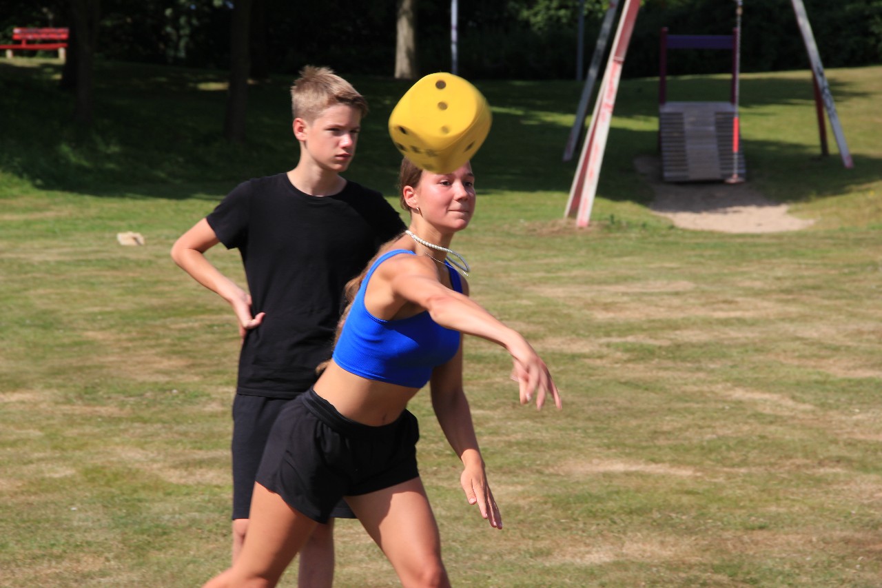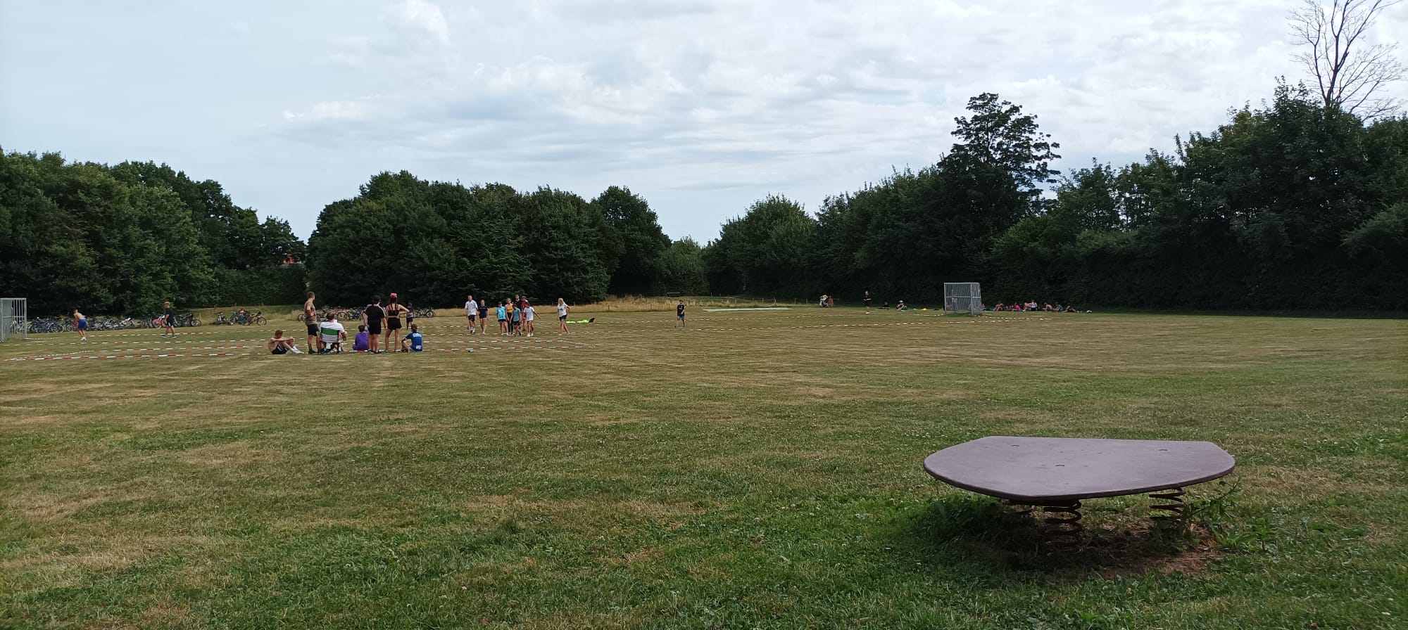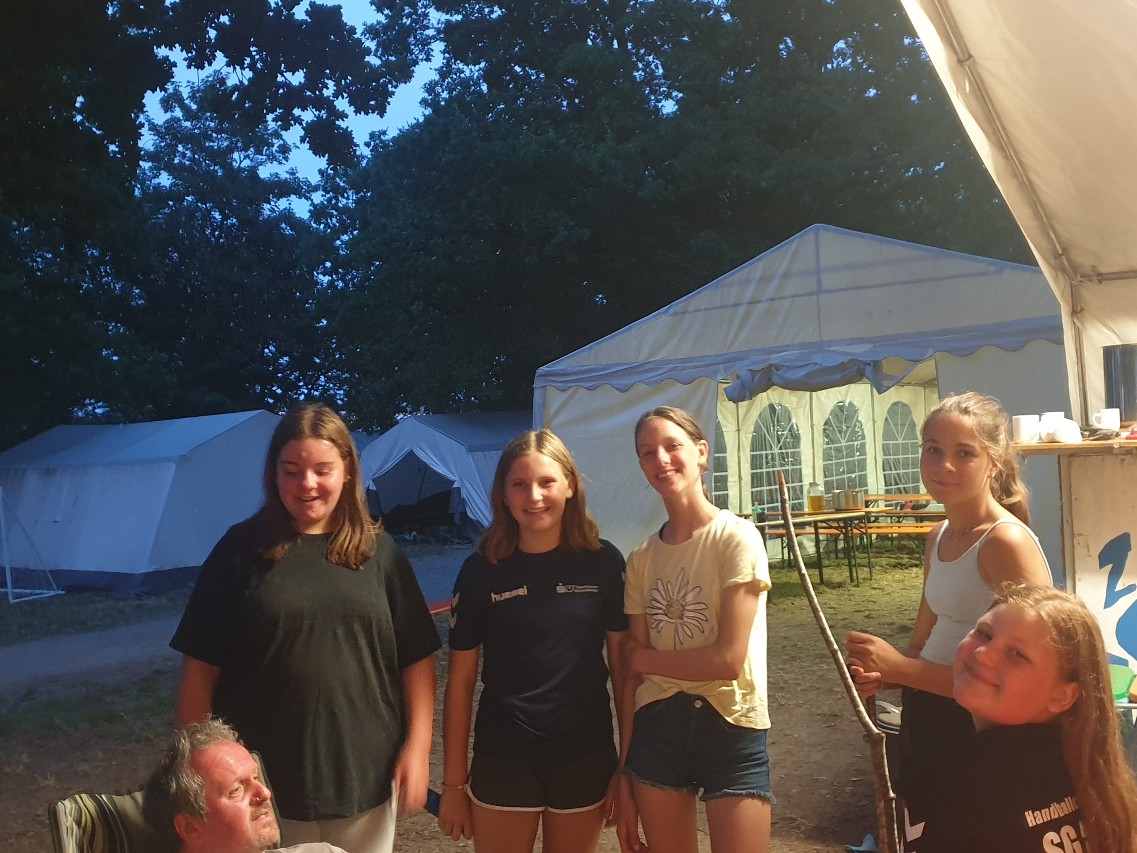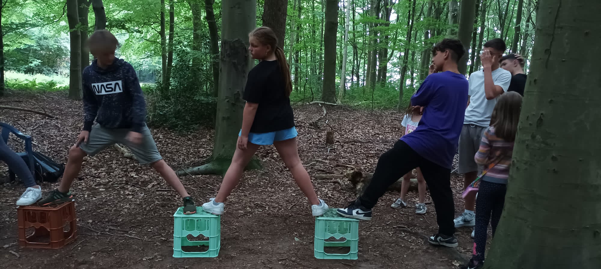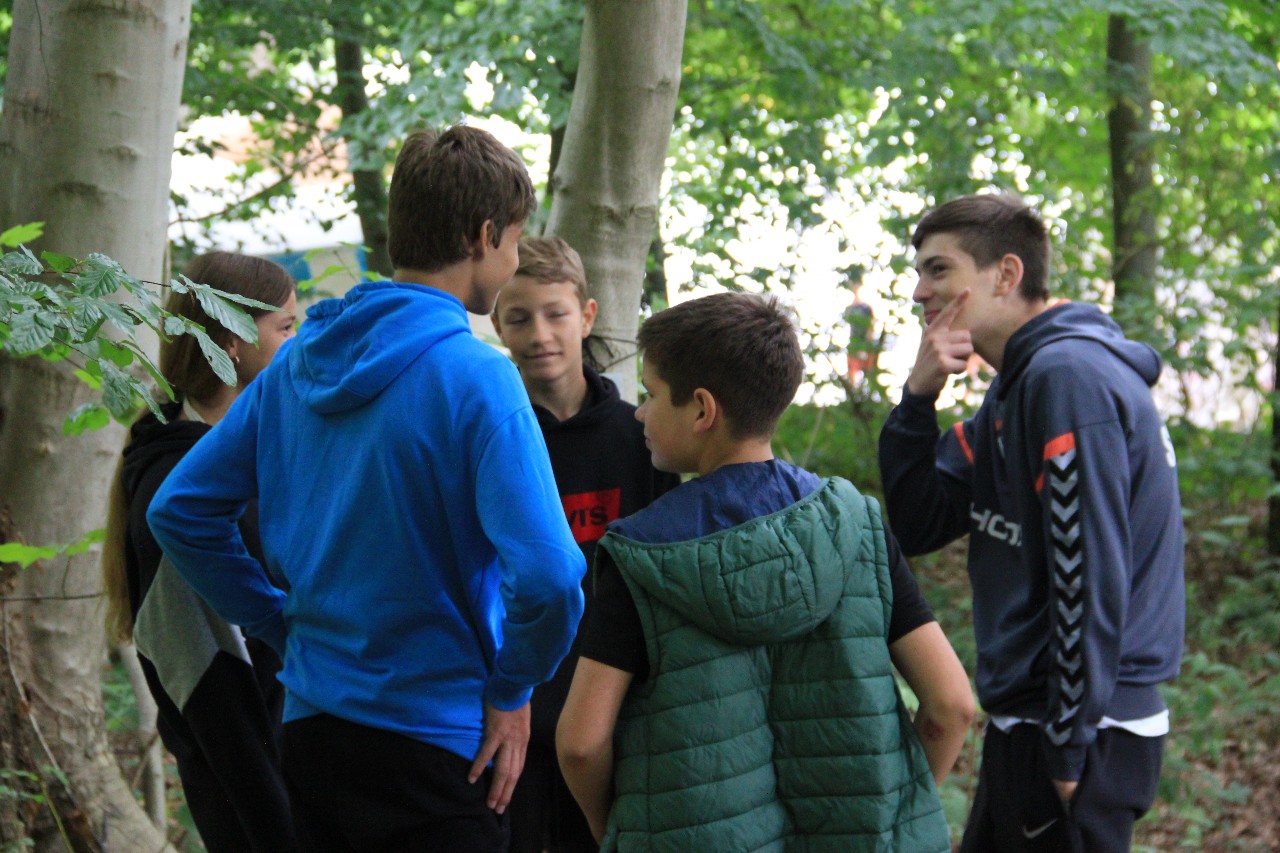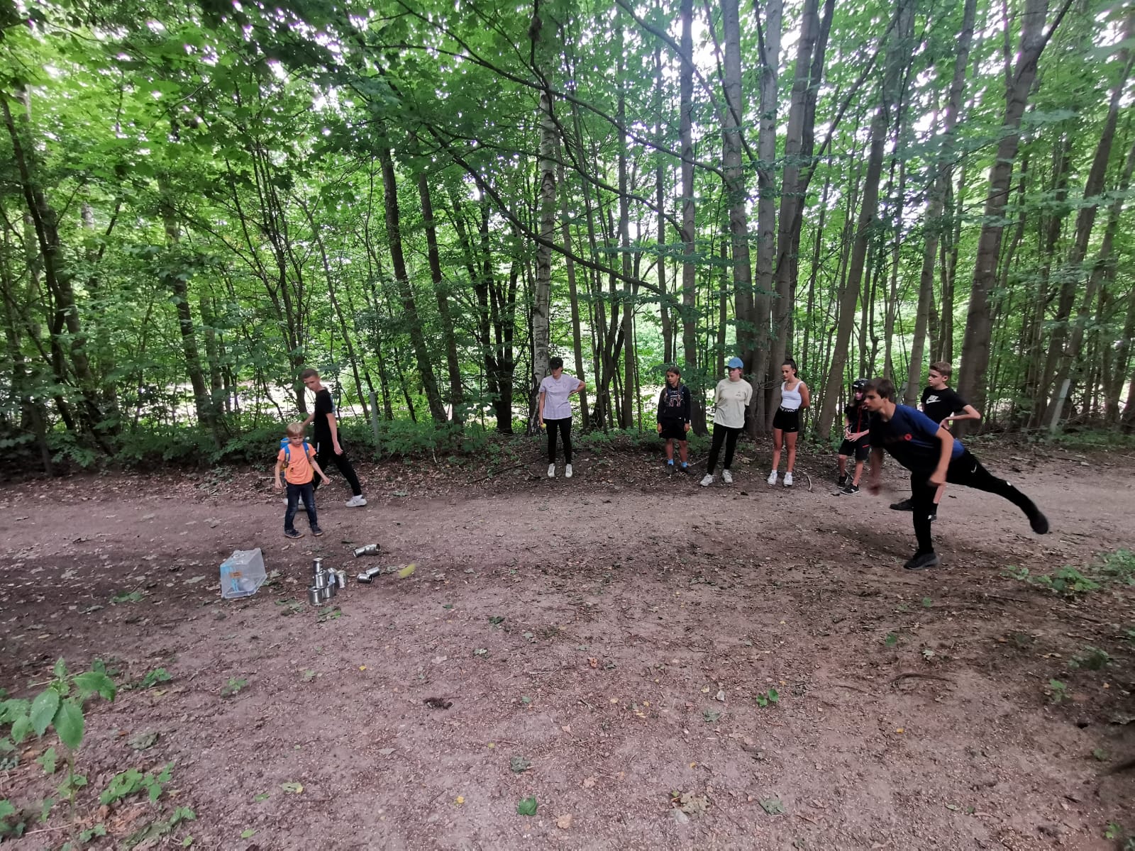 Heute Morgen wurden wir um 7:15 Uhr mit lauter Musik geweckt. Anschließend gab es leckeres Frühstück. Danach sind wir 10 Minuten mit dem Fahrrad auf eine große Wiese gefahren. Wir haben über den Vormittag einen Sportag gemacht. Hierbei haben wir Fußball, Völkerball und Minispiele gespielt! Das war lustig und schön. Als wir gegen 13:15 Uhr am Zeltplatz waren, gab es gleich Bauernfrühstück. Es hat sehr lecker geschmeckt.
