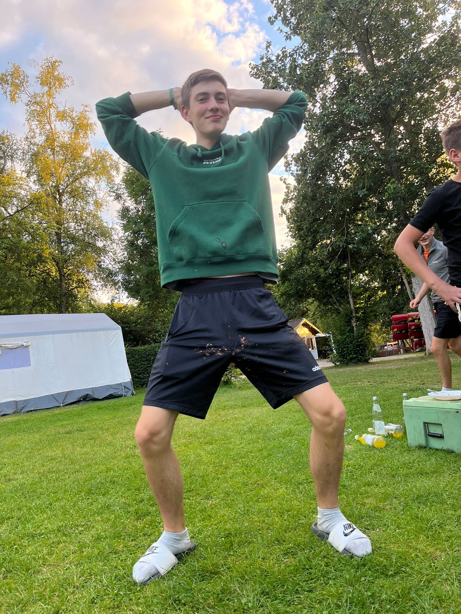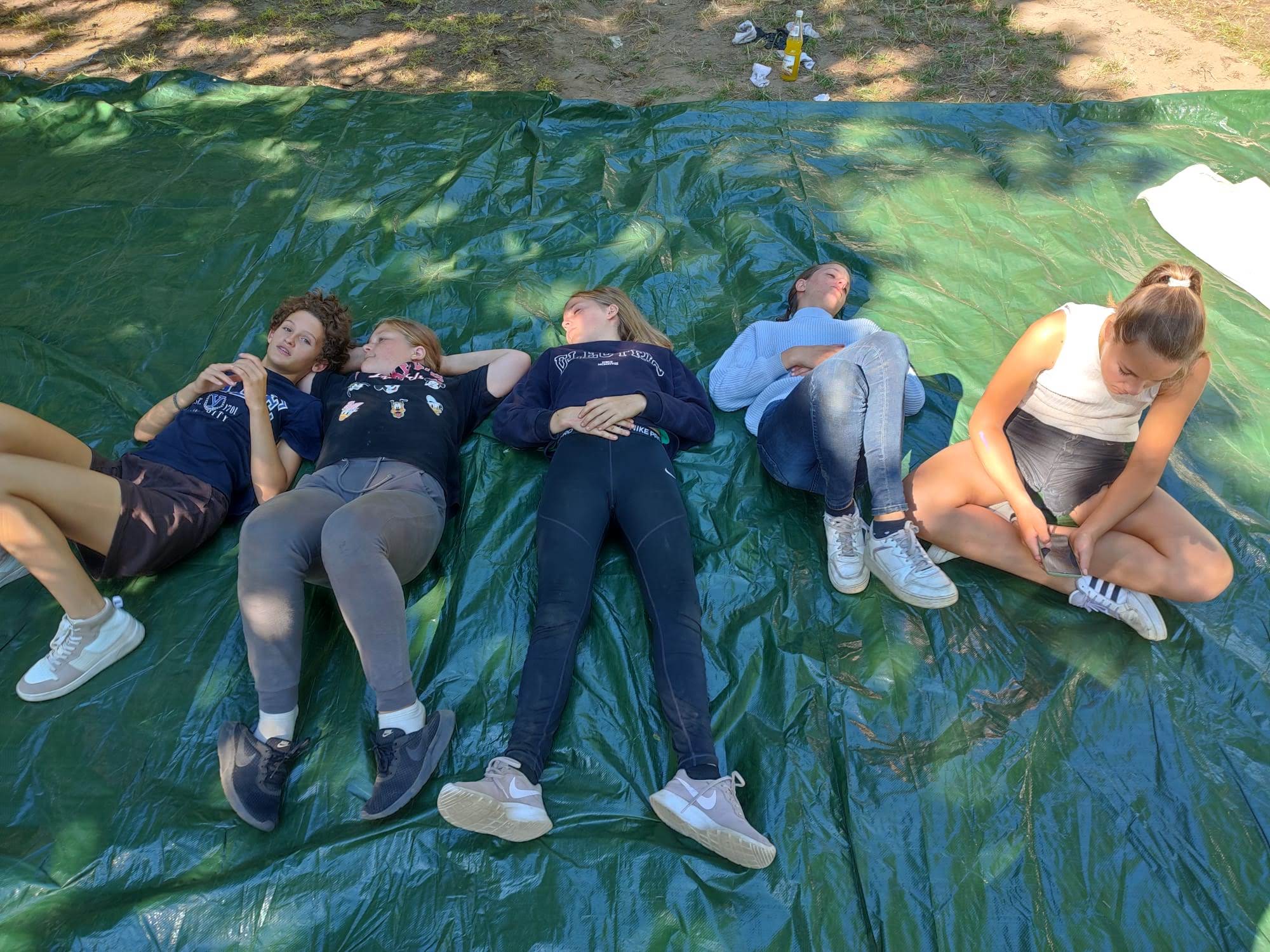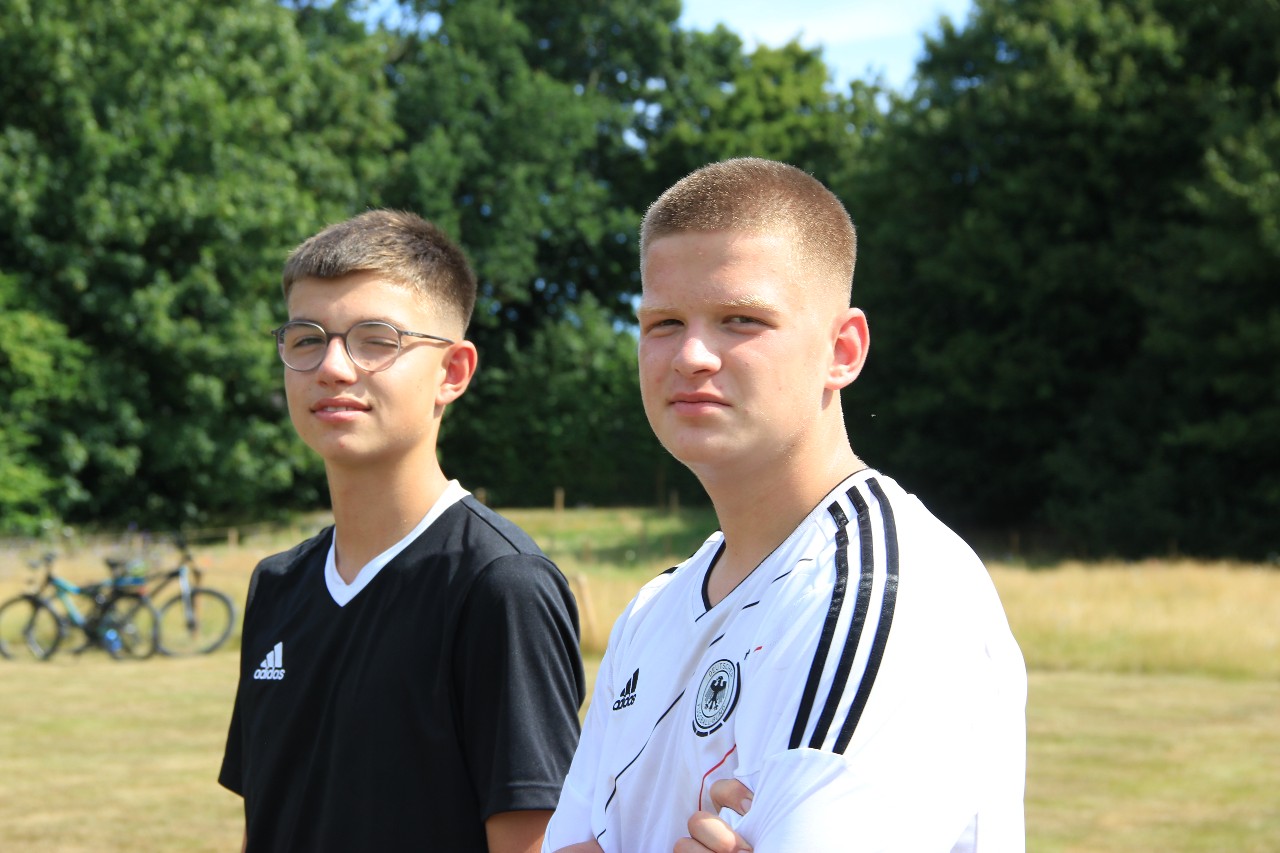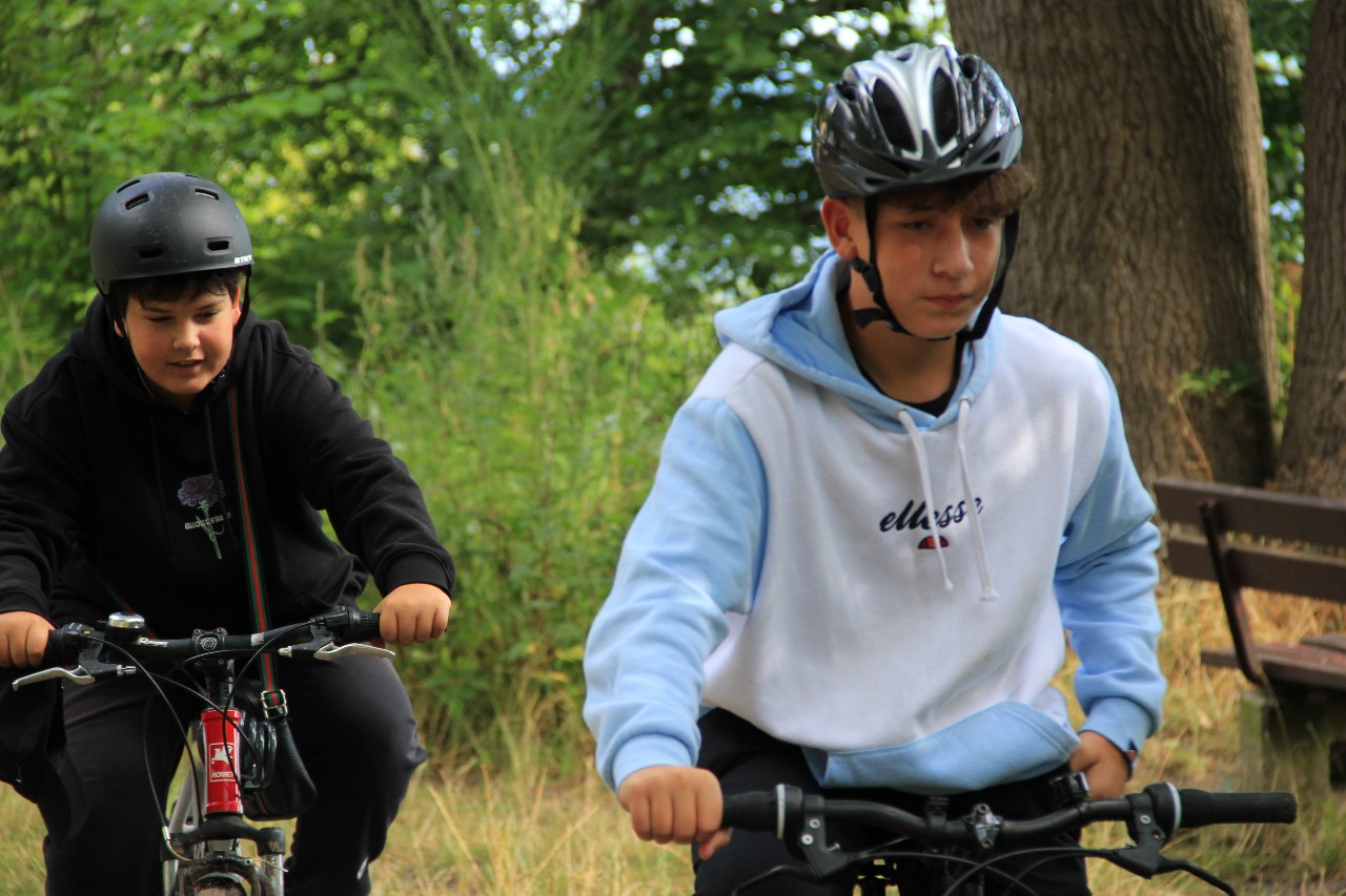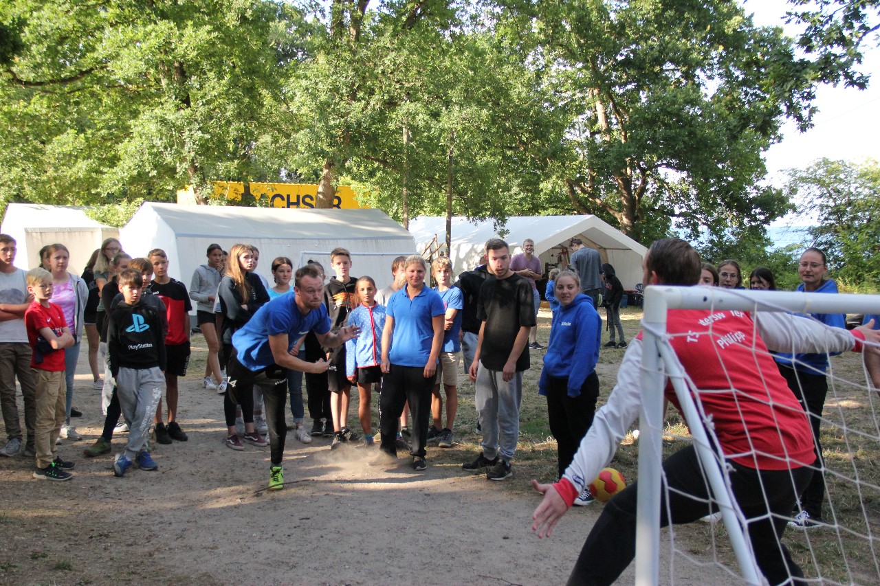 Heute Morgen wurden wir um 7:15 Uhr mit lauter Musik geweckt. Anschließend gab es leckeres Frühstück. Danach sind wir 10 Minuten mit dem Fahrrad auf eine große Wiese gefahren. Wir haben über den Vormittag einen Sportag gemacht. Hierbei haben wir Fußball, Völkerball und Minispiele gespielt! Das war lustig und schön. Als wir gegen 13:15 Uhr am Zeltplatz waren, gab es gleich Bauernfrühstück. Es hat sehr lecker geschmeckt.