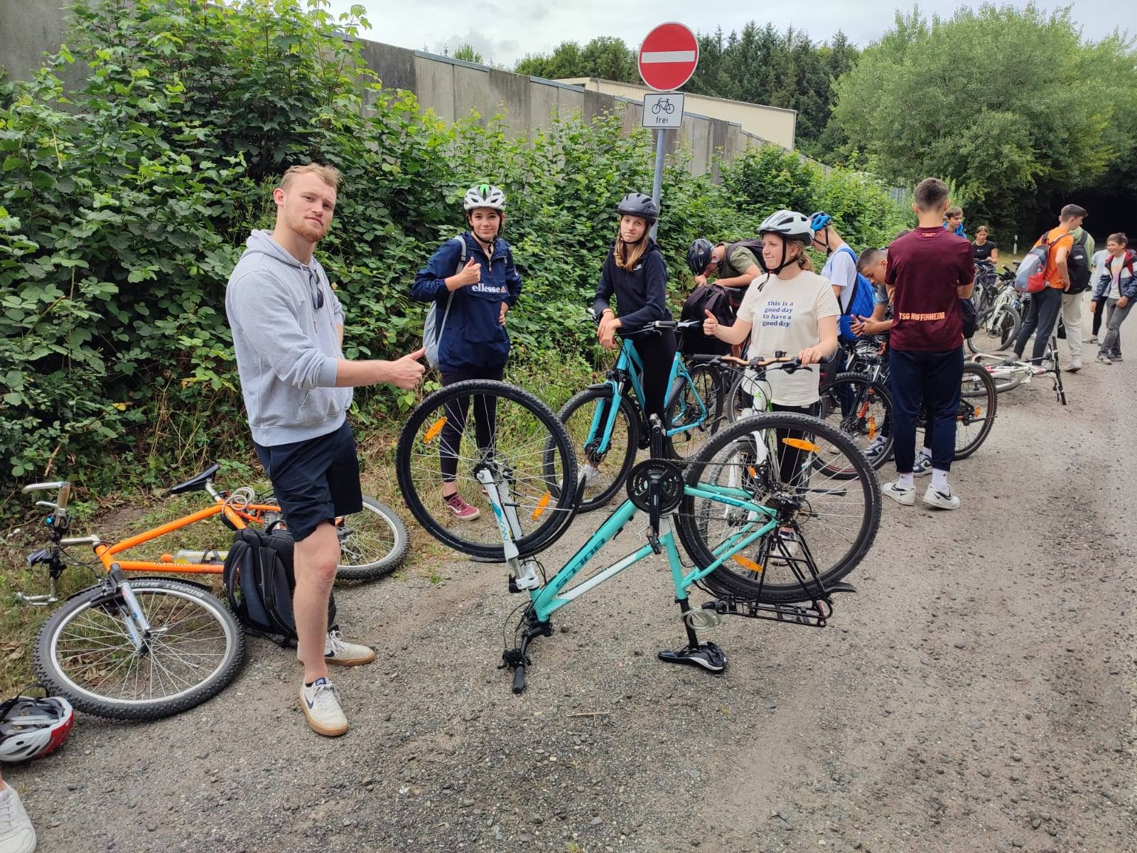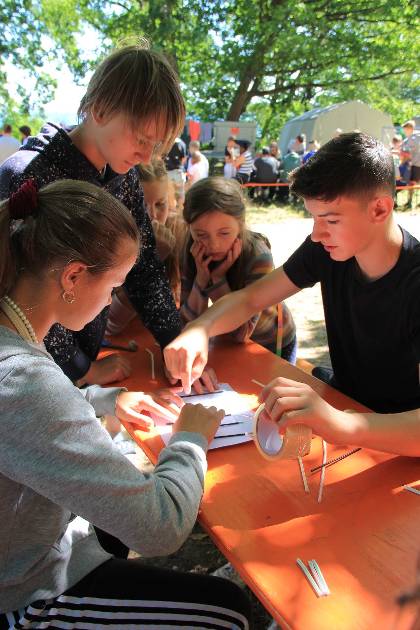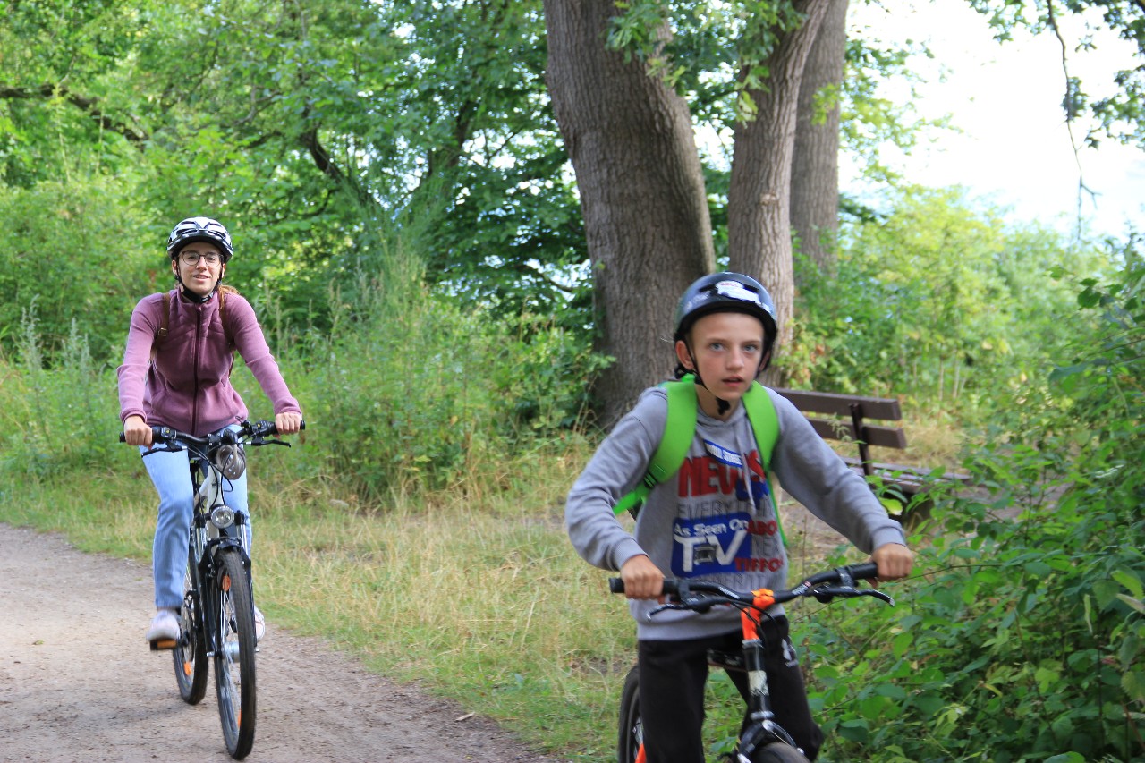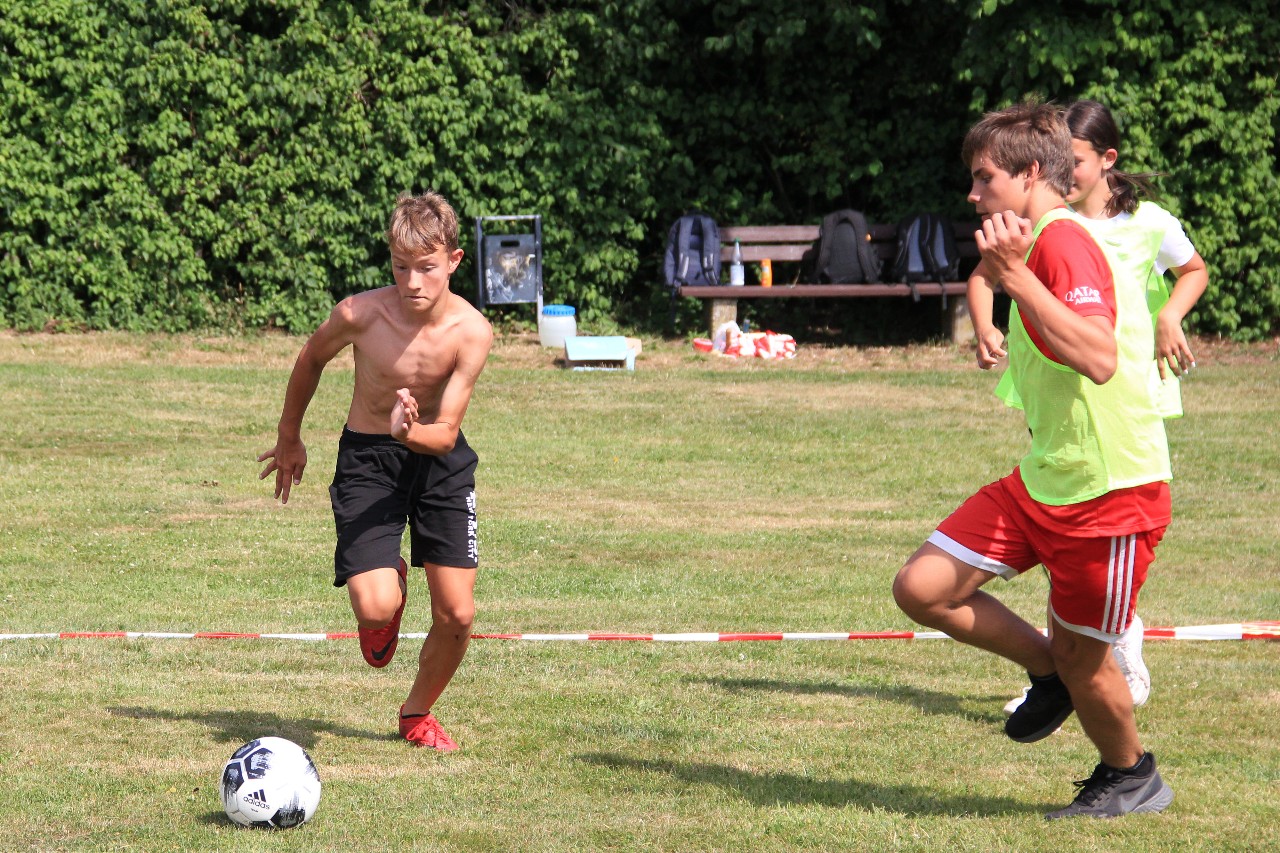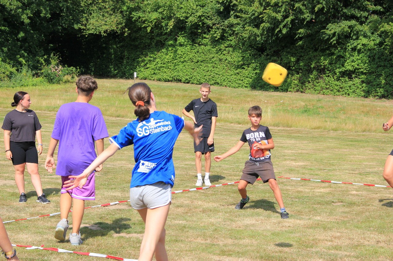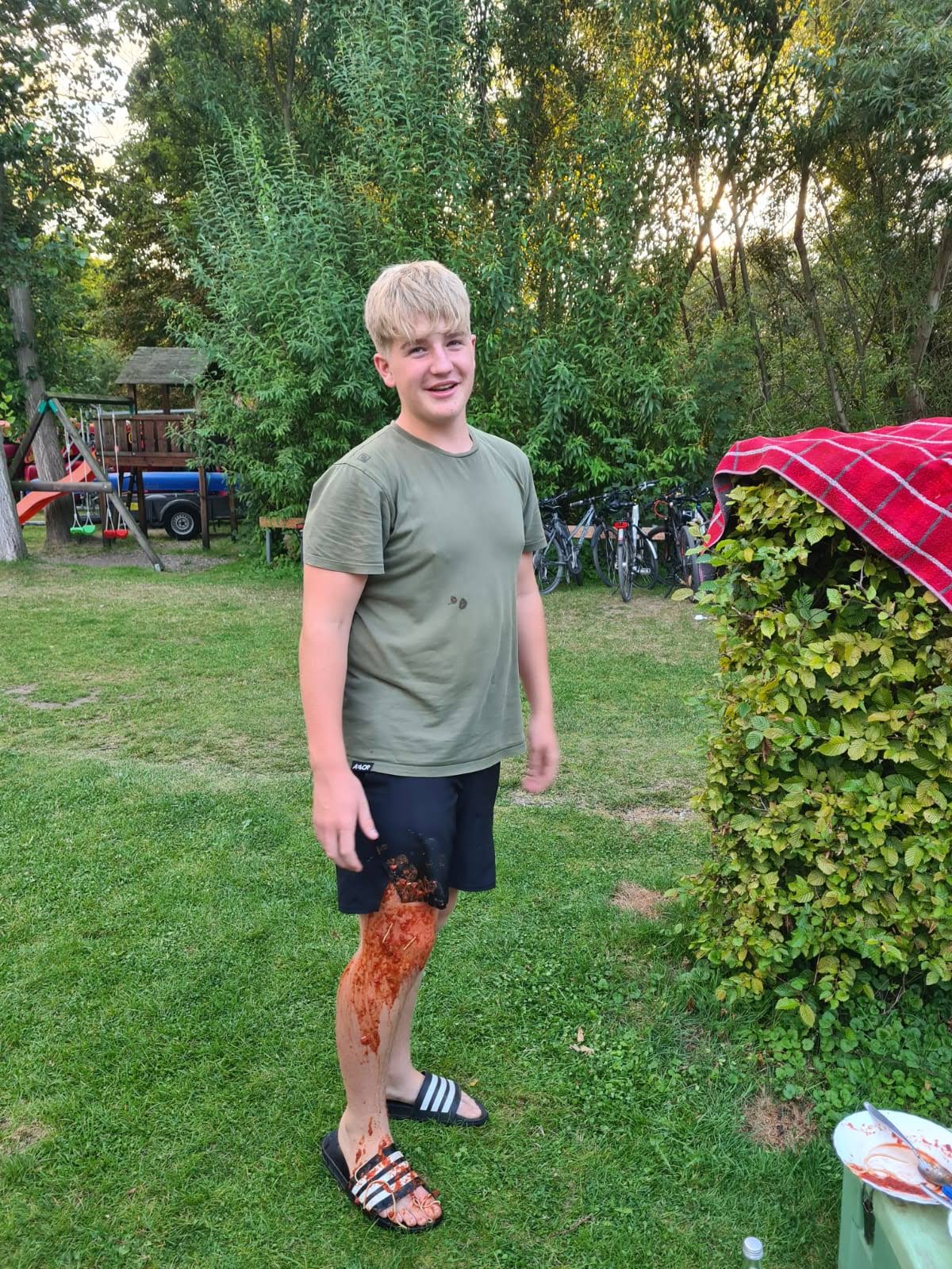 Heute Morgen wurden wir um 7:15 Uhr mit lauter Musik geweckt. Anschließend gab es leckeres Frühstück. Danach sind wir 10 Minuten mit dem Fahrrad auf eine große Wiese gefahren. Wir haben über den Vormittag einen Sportag gemacht. Hierbei haben wir Fußball, Völkerball und Minispiele gespielt! Das war lustig und schön. Als wir gegen 13:15 Uhr am Zeltplatz waren, gab es gleich Bauernfrühstück. Es hat sehr lecker geschmeckt.