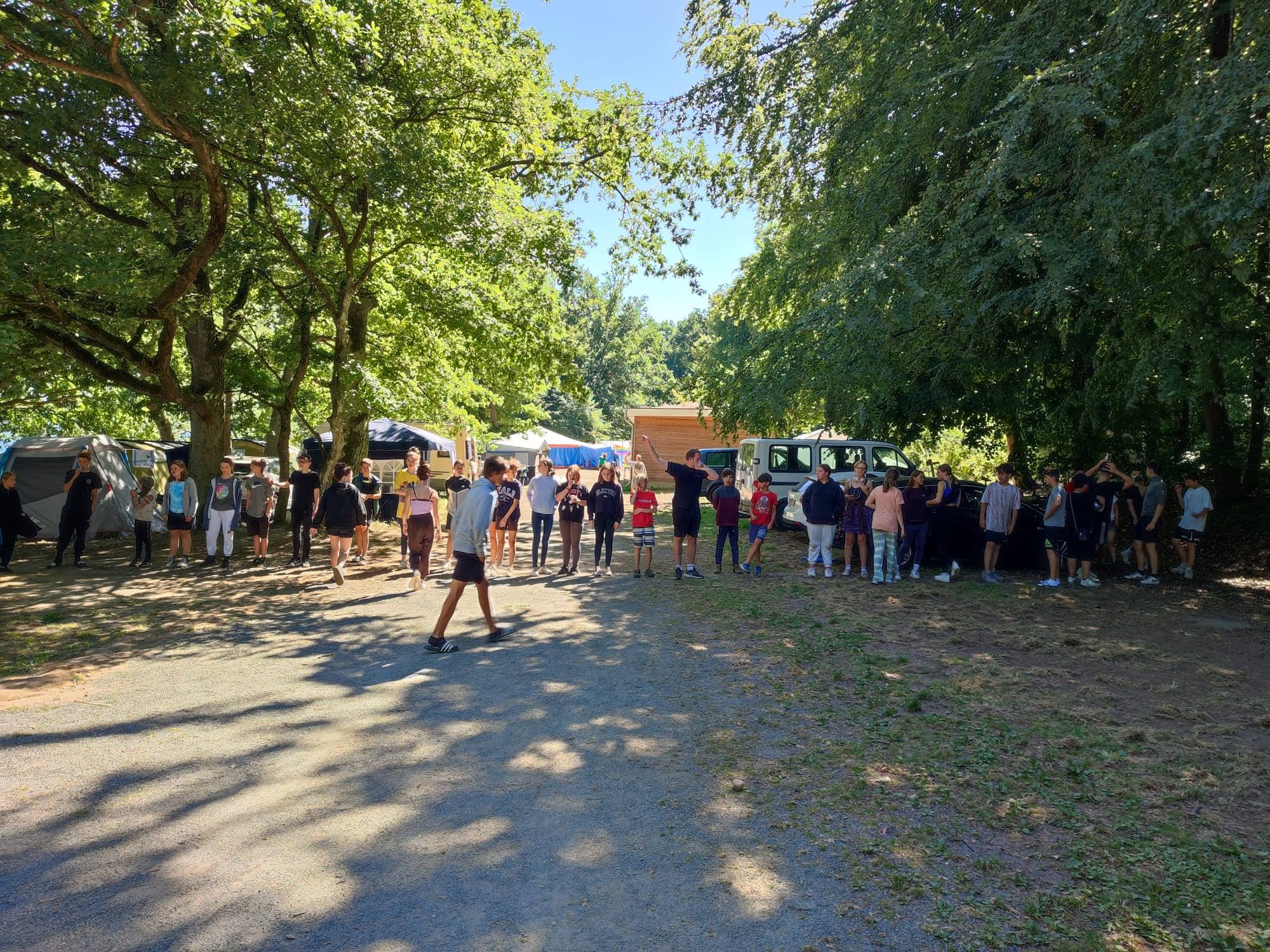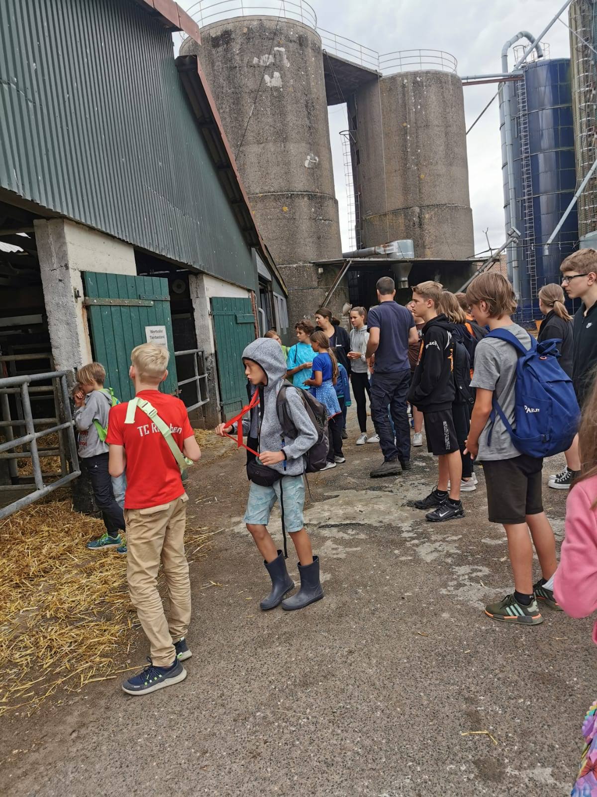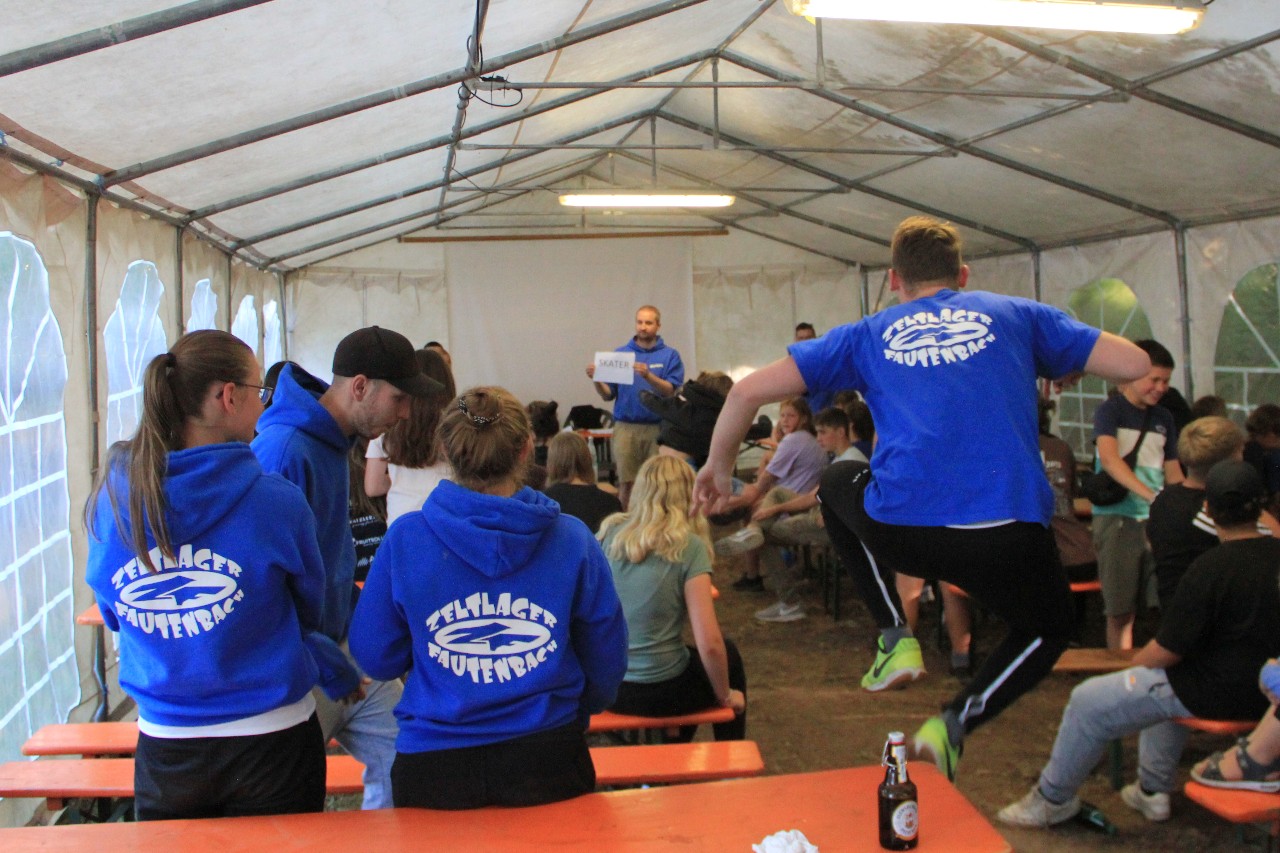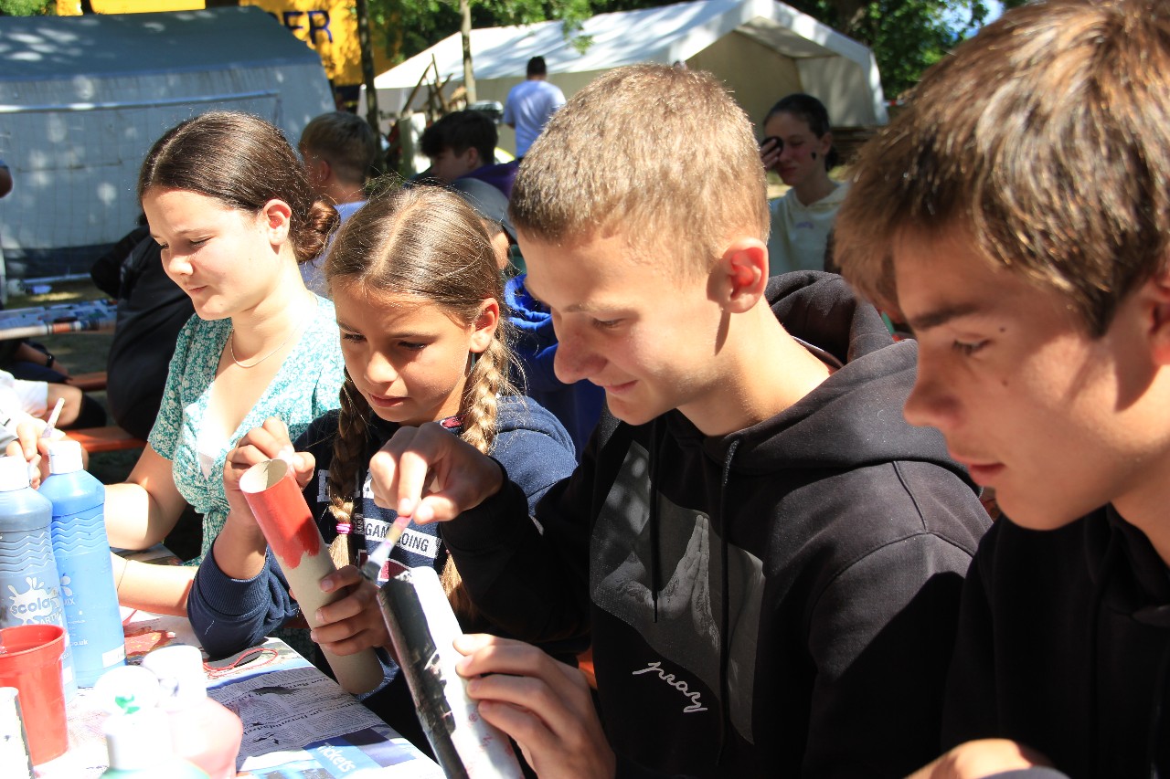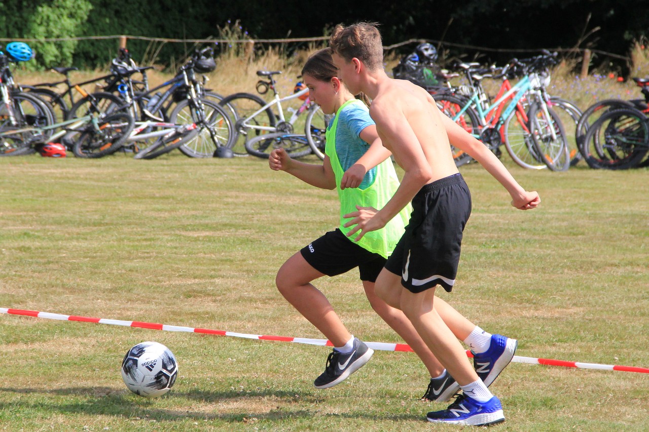 Heute Morgen wurden wir um 7:15 Uhr mit lauter Musik geweckt. Anschließend gab es leckeres Frühstück. Danach sind wir 10 Minuten mit dem Fahrrad auf eine große Wiese gefahren. Wir haben über den Vormittag einen Sportag gemacht. Hierbei haben wir Fußball, Völkerball und Minispiele gespielt! Das war lustig und schön. Als wir gegen 13:15 Uhr am Zeltplatz waren, gab es gleich Bauernfrühstück. Es hat sehr lecker geschmeckt.