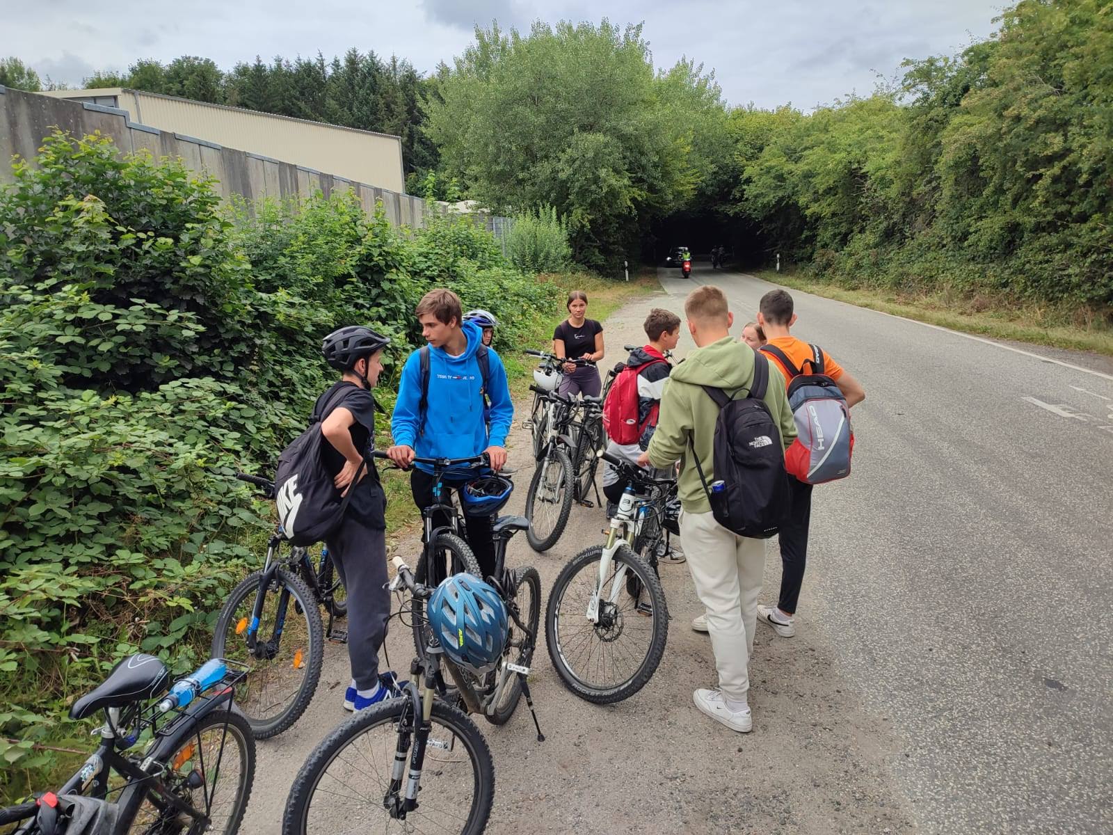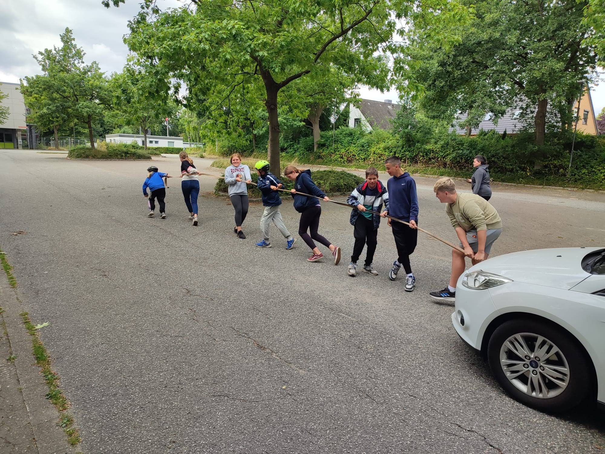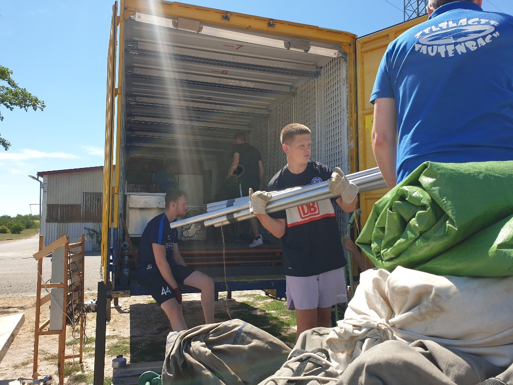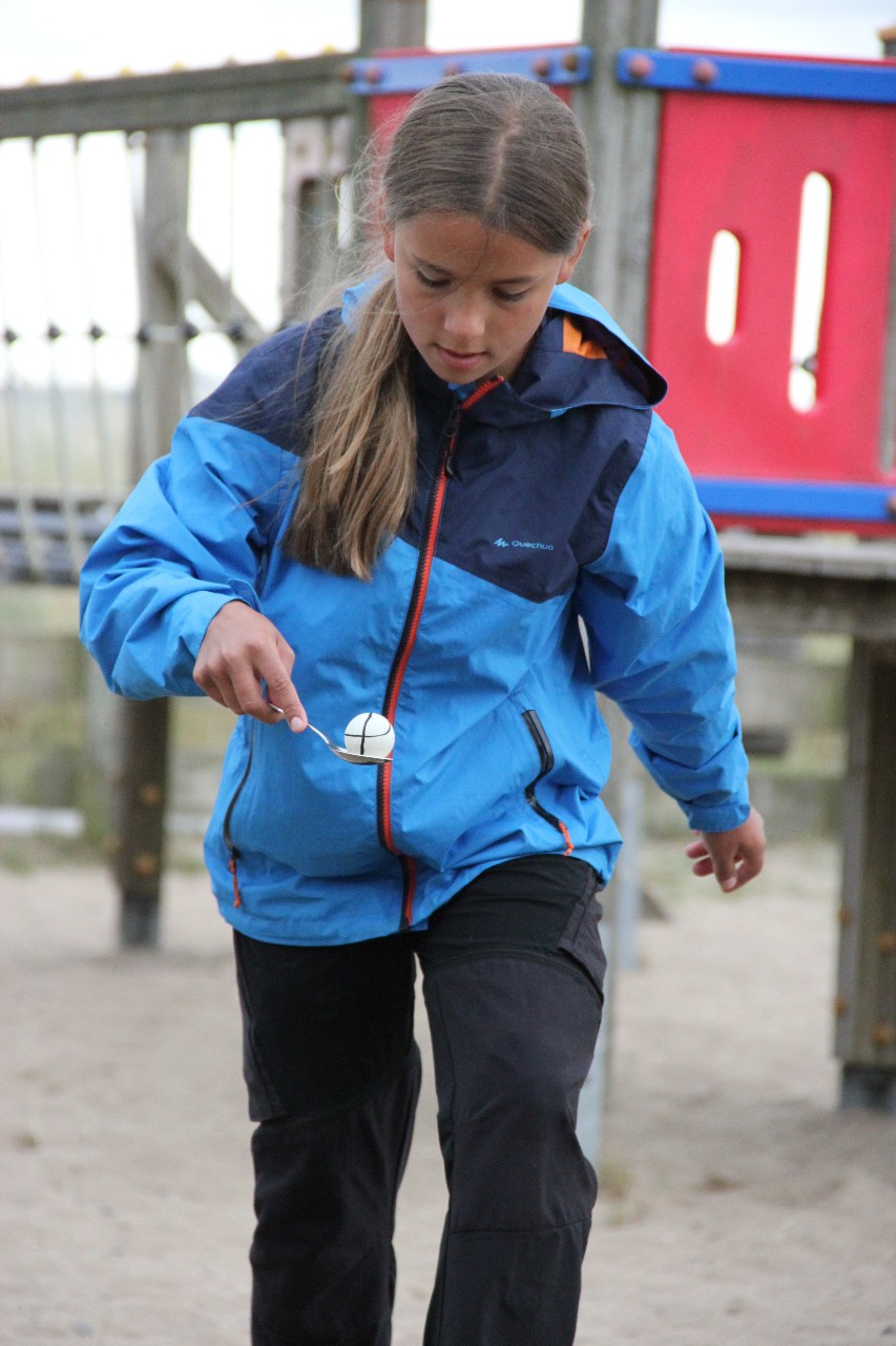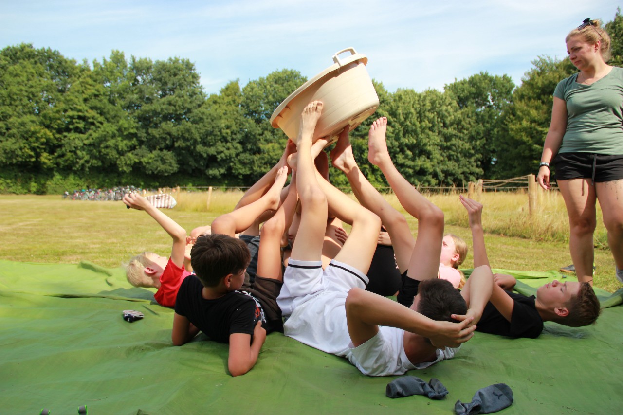 Heute Morgen wurden wir um 7:15 Uhr mit lauter Musik geweckt. Anschließend gab es leckeres Frühstück. Danach sind wir 10 Minuten mit dem Fahrrad auf eine große Wiese gefahren. Wir haben über den Vormittag einen Sportag gemacht. Hierbei haben wir Fußball, Völkerball und Minispiele gespielt! Das war lustig und schön. Als wir gegen 13:15 Uhr am Zeltplatz waren, gab es gleich Bauernfrühstück. Es hat sehr lecker geschmeckt.