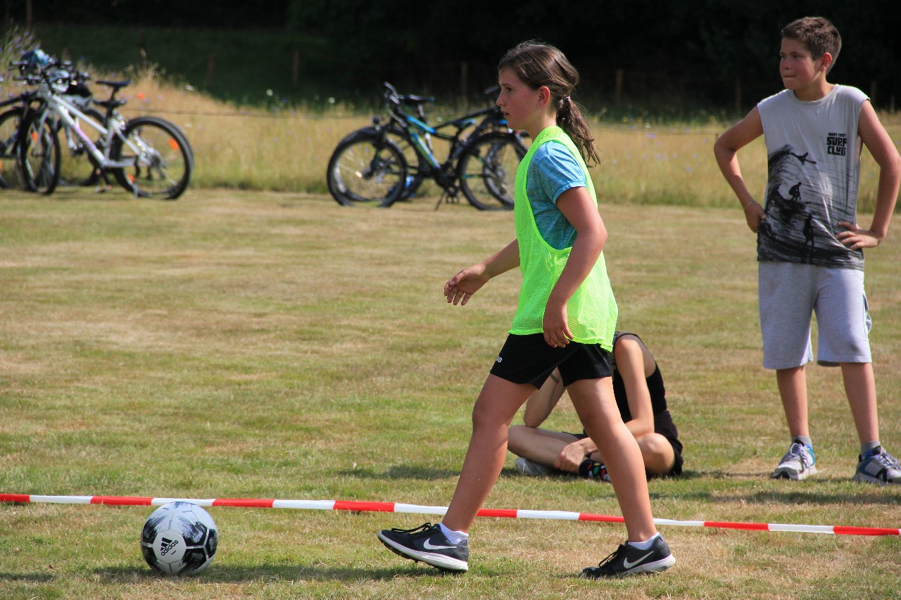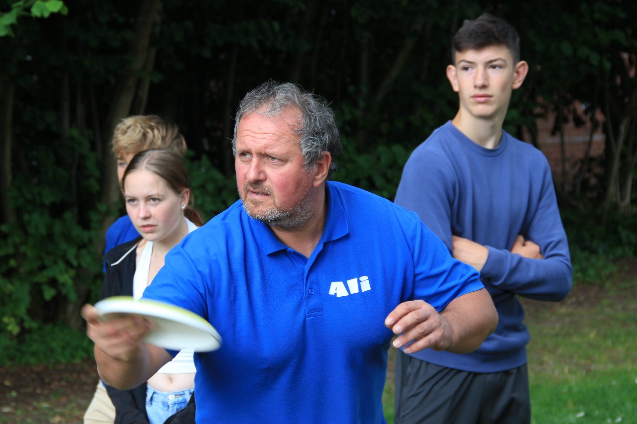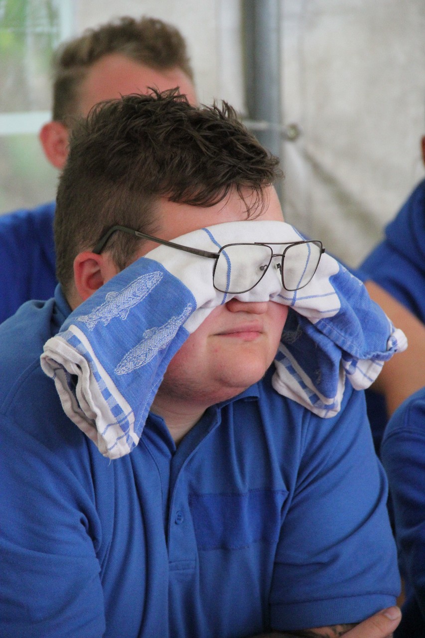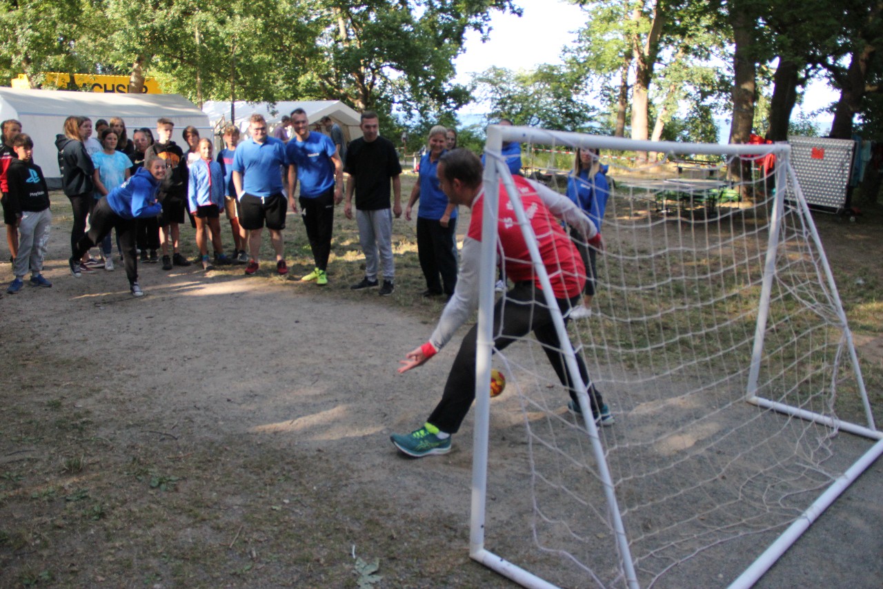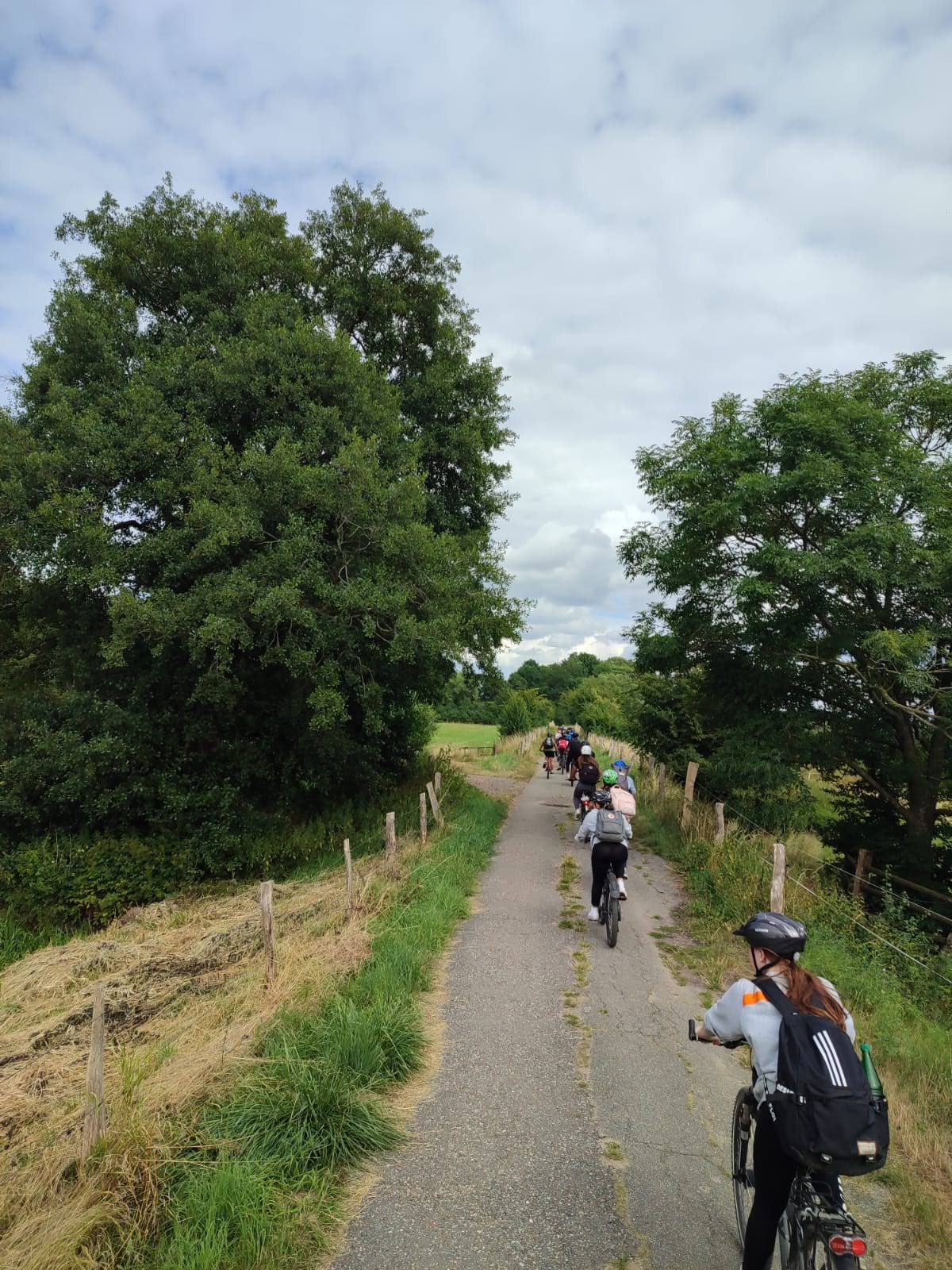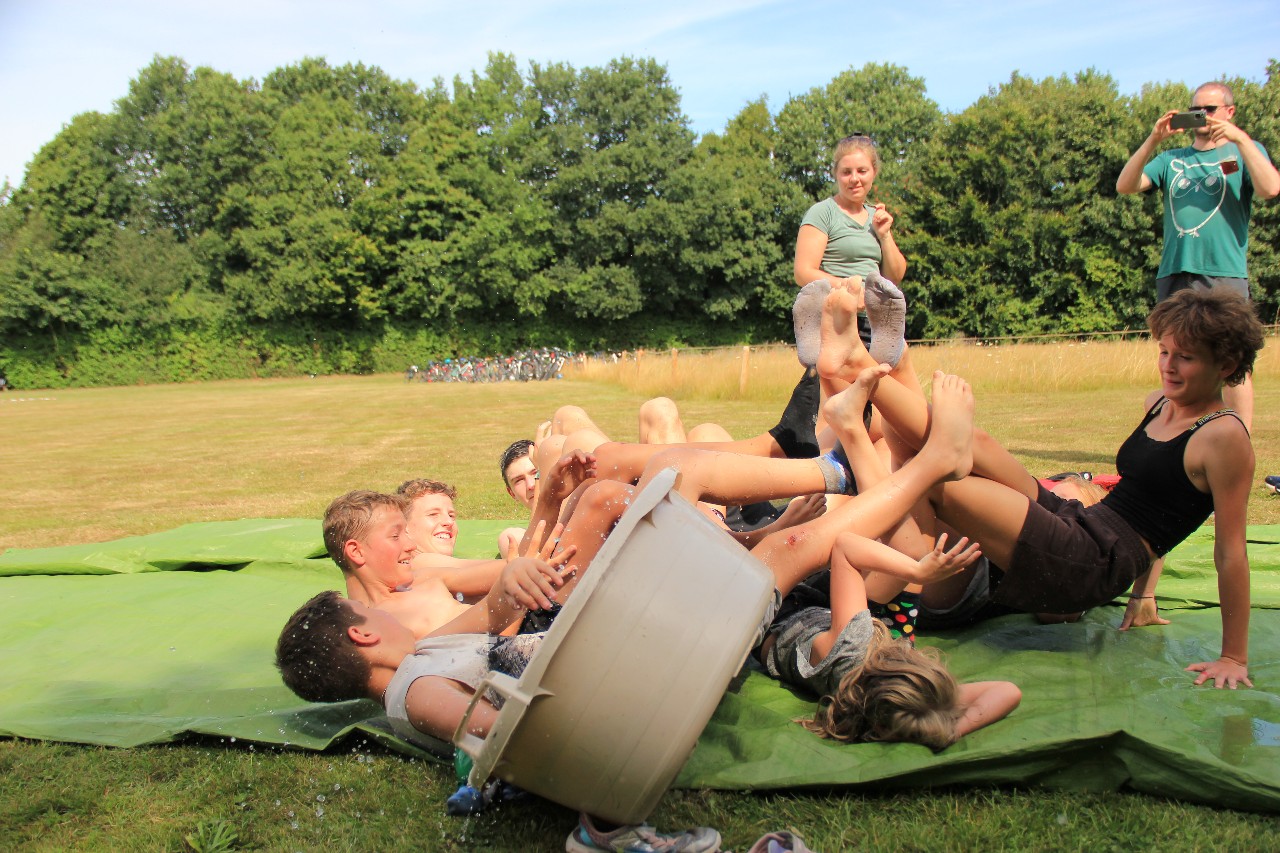 Heute Morgen wurden wir um 7:15 Uhr mit lauter Musik geweckt. Anschließend gab es leckeres Frühstück. Danach sind wir 10 Minuten mit dem Fahrrad auf eine große Wiese gefahren. Wir haben über den Vormittag einen Sportag gemacht. Hierbei haben wir Fußball, Völkerball und Minispiele gespielt! Das war lustig und schön. Als wir gegen 13:15 Uhr am Zeltplatz waren, gab es gleich Bauernfrühstück. Es hat sehr lecker geschmeckt.