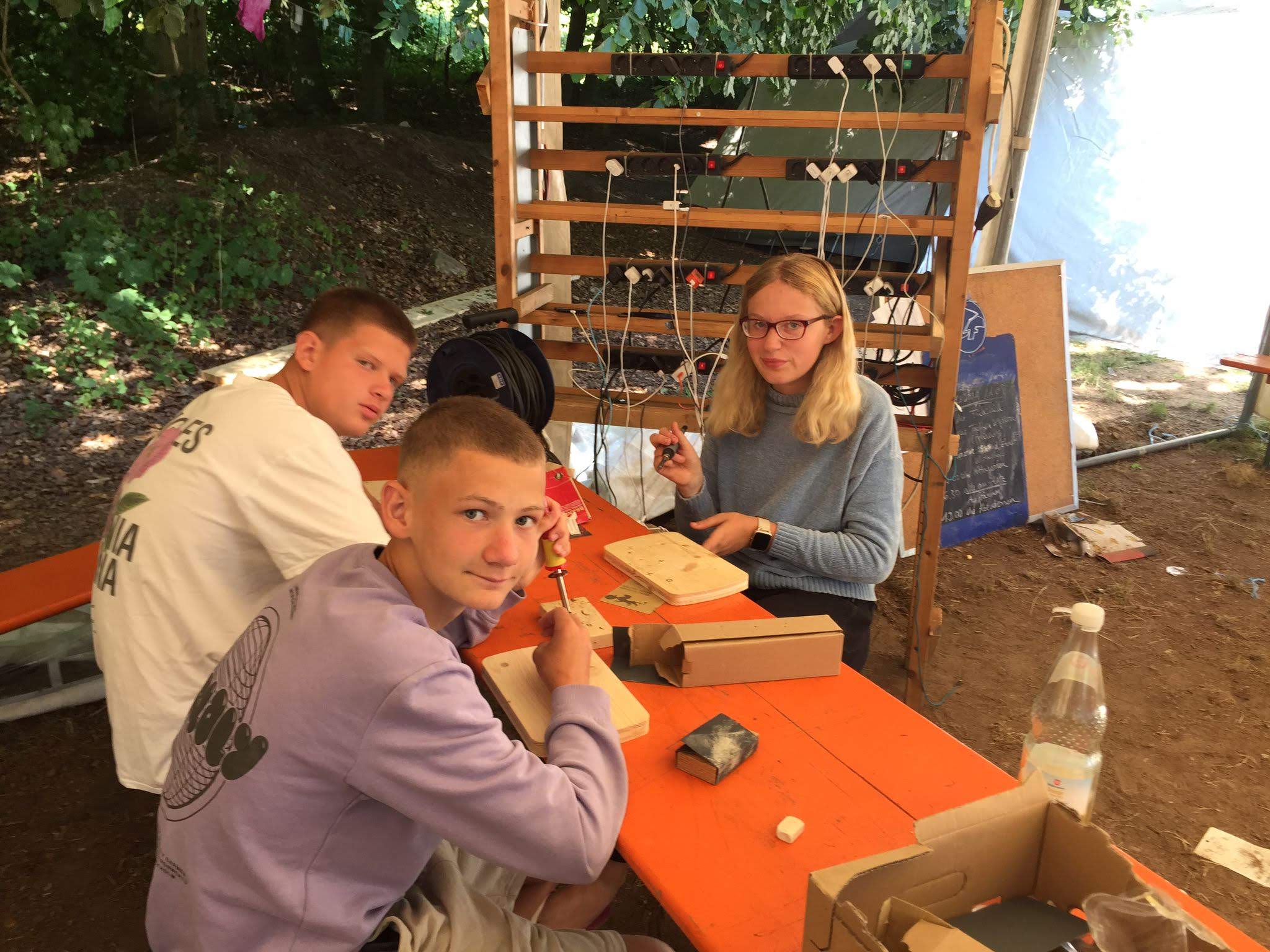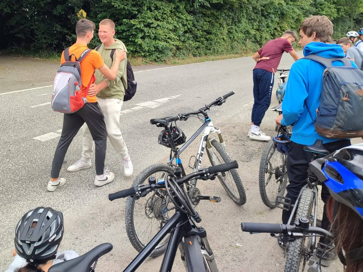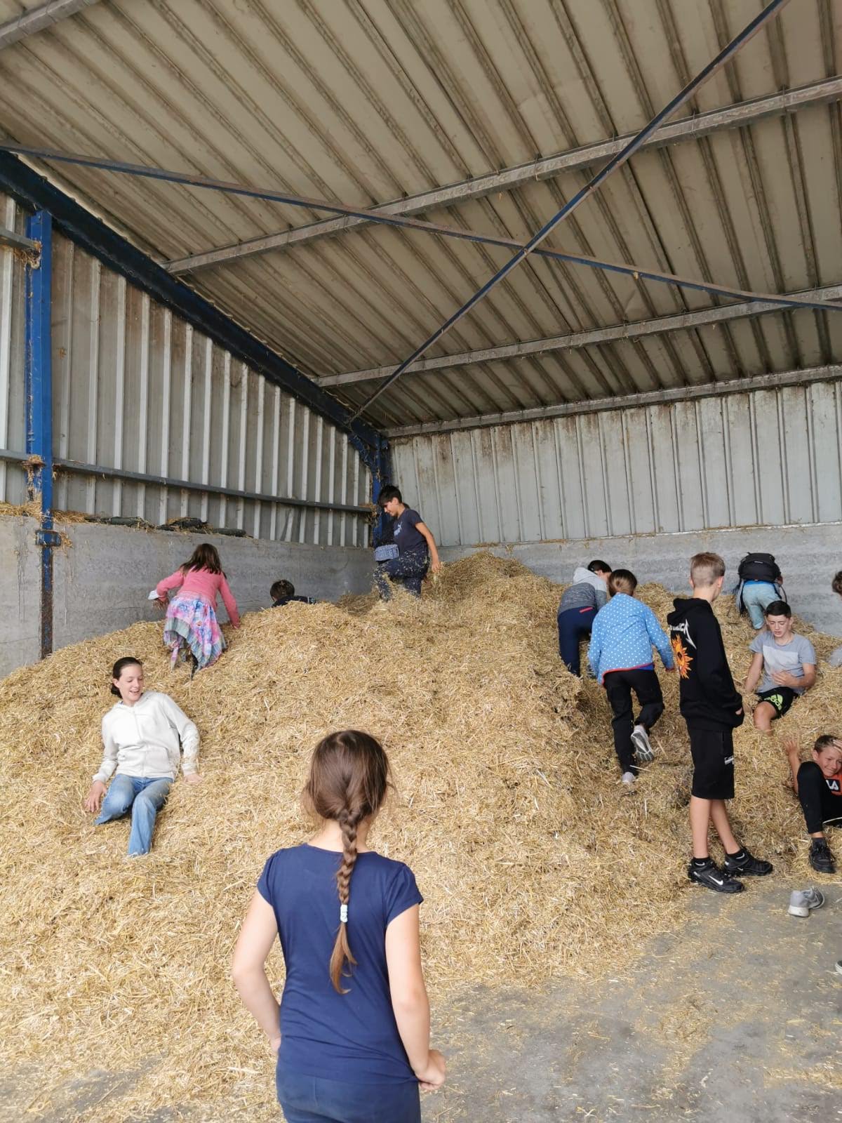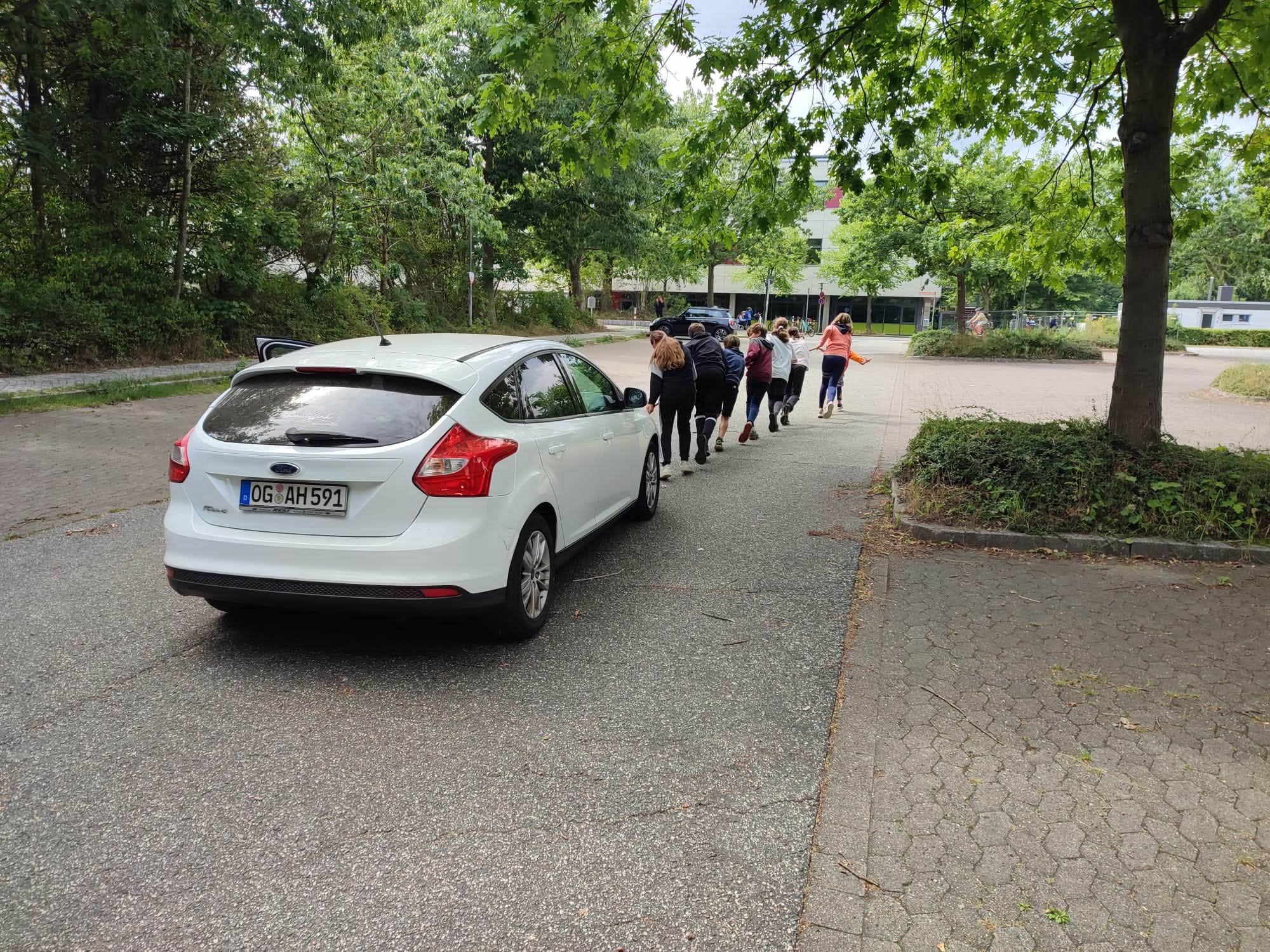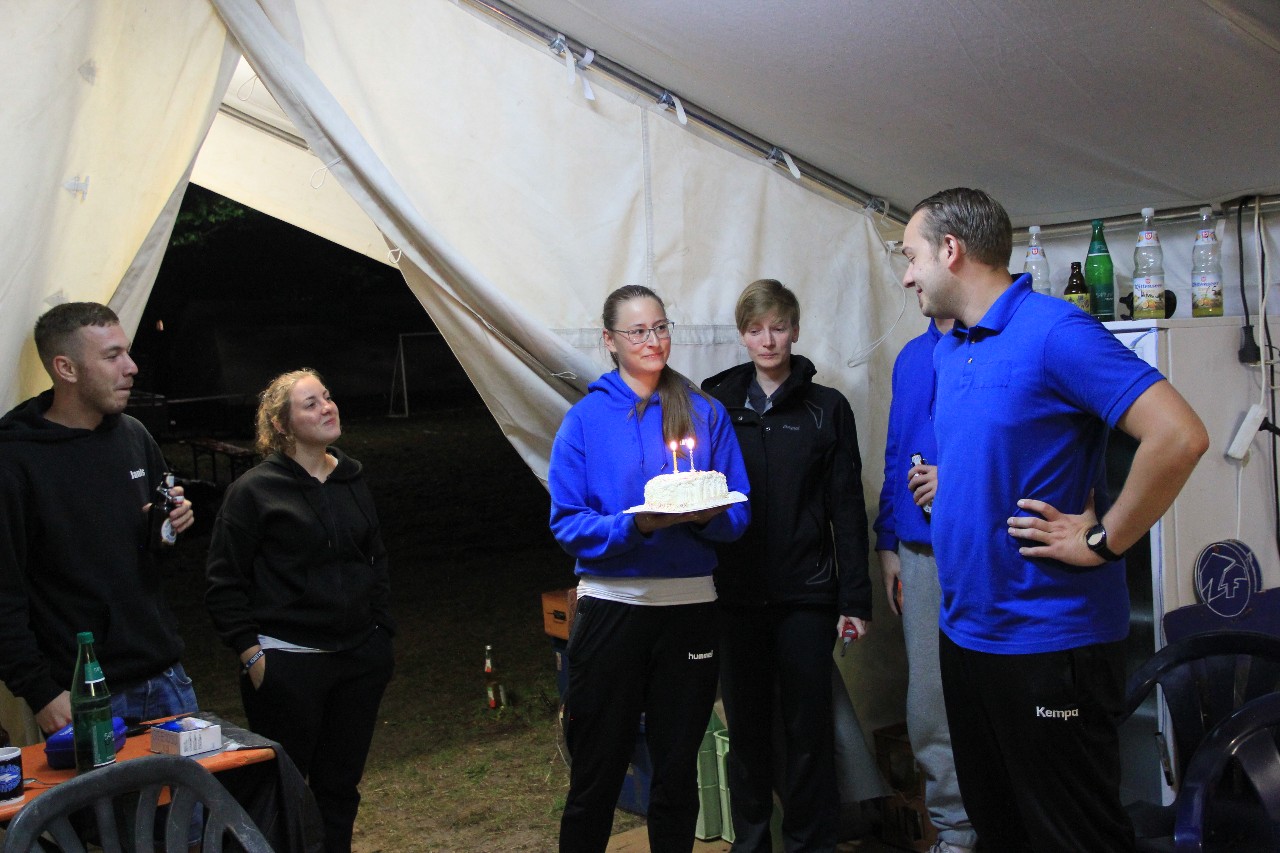 Heute Morgen wurden wir um 7:15 Uhr mit lauter Musik geweckt. Anschließend gab es leckeres Frühstück. Danach sind wir 10 Minuten mit dem Fahrrad auf eine große Wiese gefahren. Wir haben über den Vormittag einen Sportag gemacht. Hierbei haben wir Fußball, Völkerball und Minispiele gespielt! Das war lustig und schön. Als wir gegen 13:15 Uhr am Zeltplatz waren, gab es gleich Bauernfrühstück. Es hat sehr lecker geschmeckt.