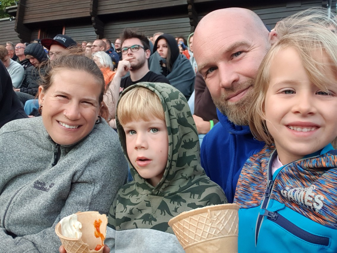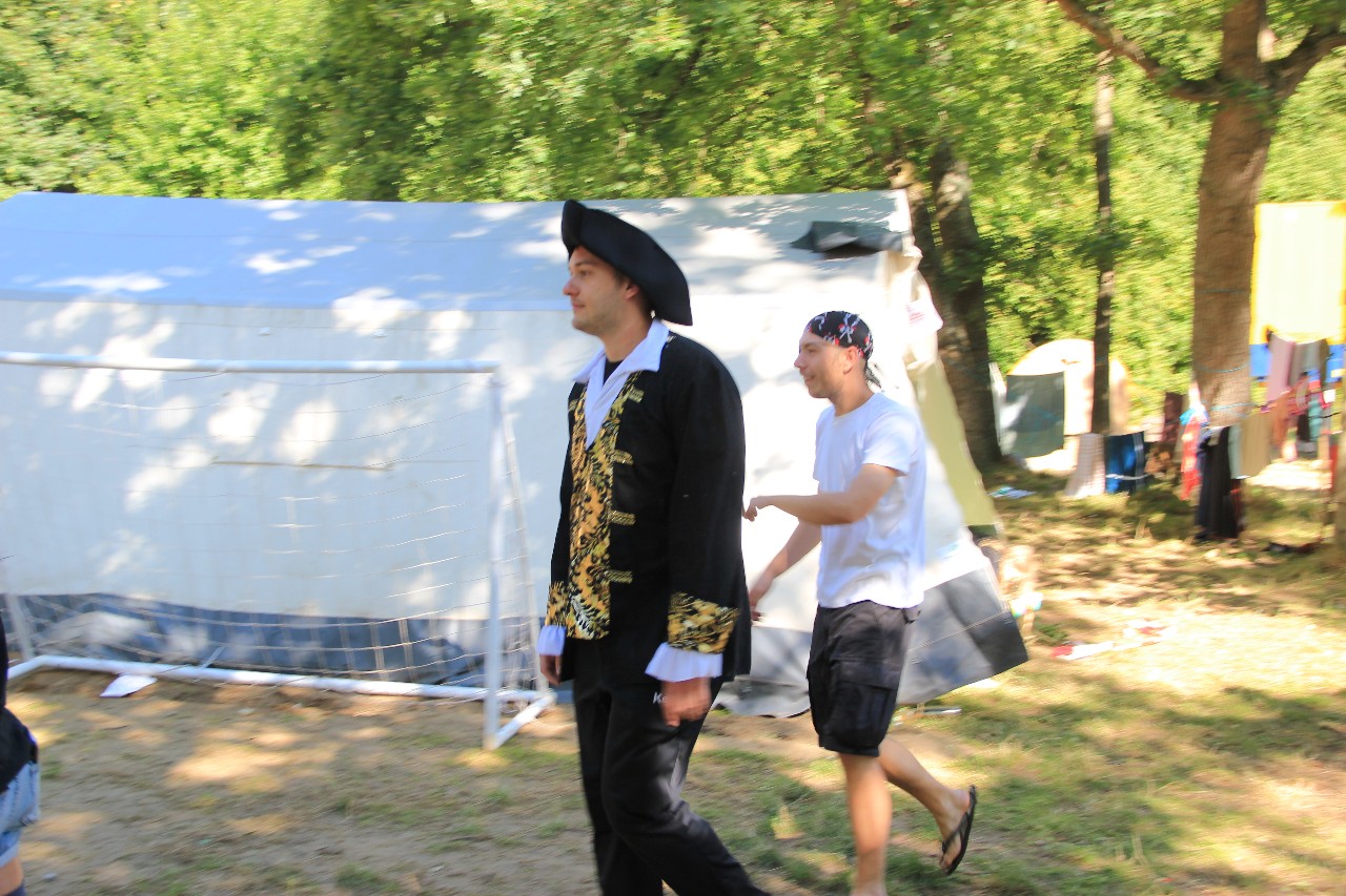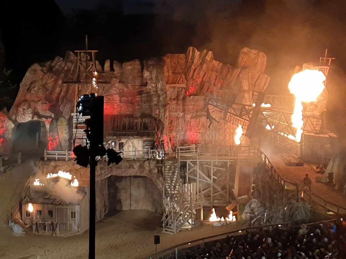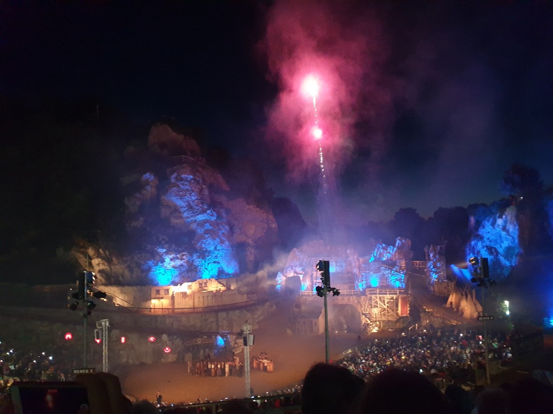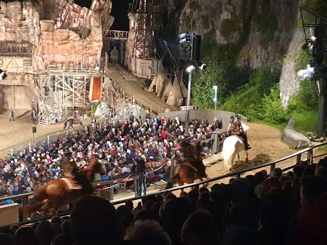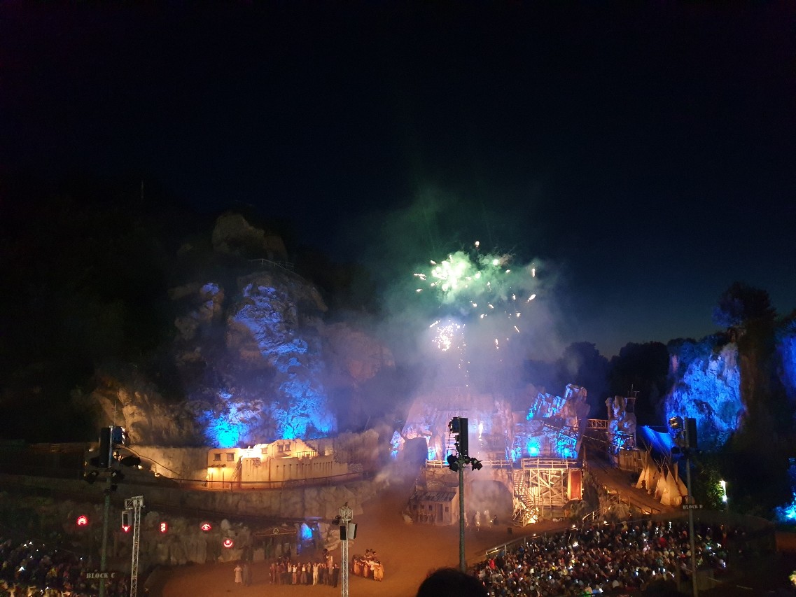 Wir wurden heute wieder von Musik geweckt. Dann sind wir zum Frühstück gegangen, wo wir dann das Spiel 44 Bäume angefangen haben. Das Spiel war für die Kleinen ein wenig schwierig und deshalb haben die Großen die Fragen beantwortet. Danach war Mittagessen und nachdem wir gegessen hatten sind wir mit der Fähre zum Kieler Hauptbahnhof gefahren, und von dort mit dem Zug nach Bad Segeberg zu den Karl-May Festspielen gefahren. Wir fanden das Feuer und die Explosionen gut, aber auch, dass Mr. Jackson am Anfang vom 5 m hohen Bohrturm in ein Haus gefallen ist.