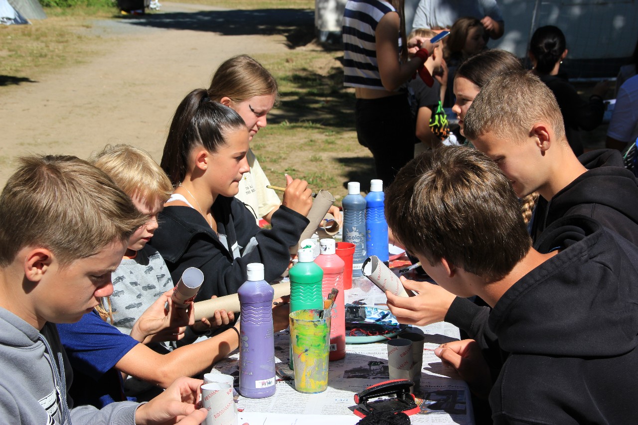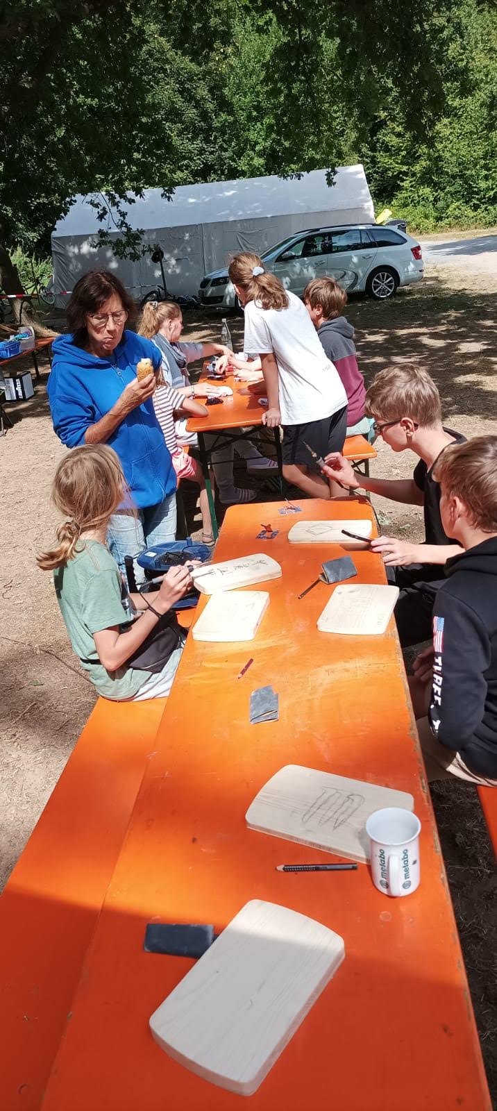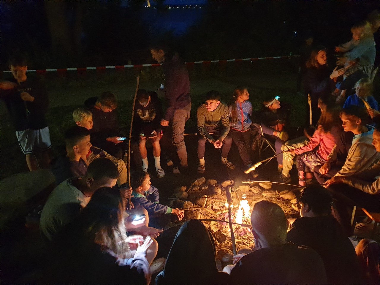 Ab 15:00 Uhr durften wir an den Hundestrand gehen, Boot und Kanu fahren, Workshops machen oder einfach chillen. Abends gab es Reste zum Essen und wir haben Lagerfeuer und Stockbrot gemacht.