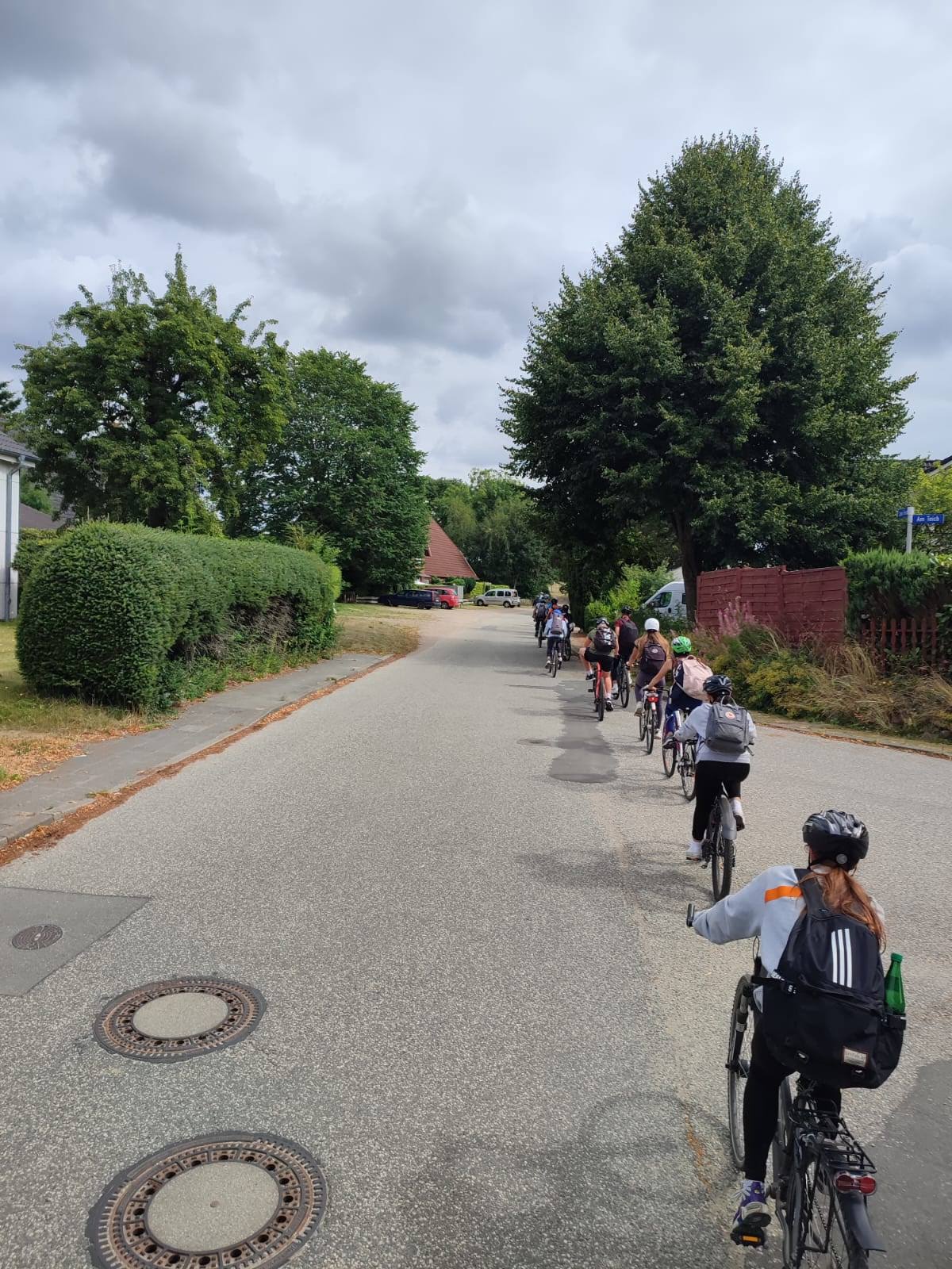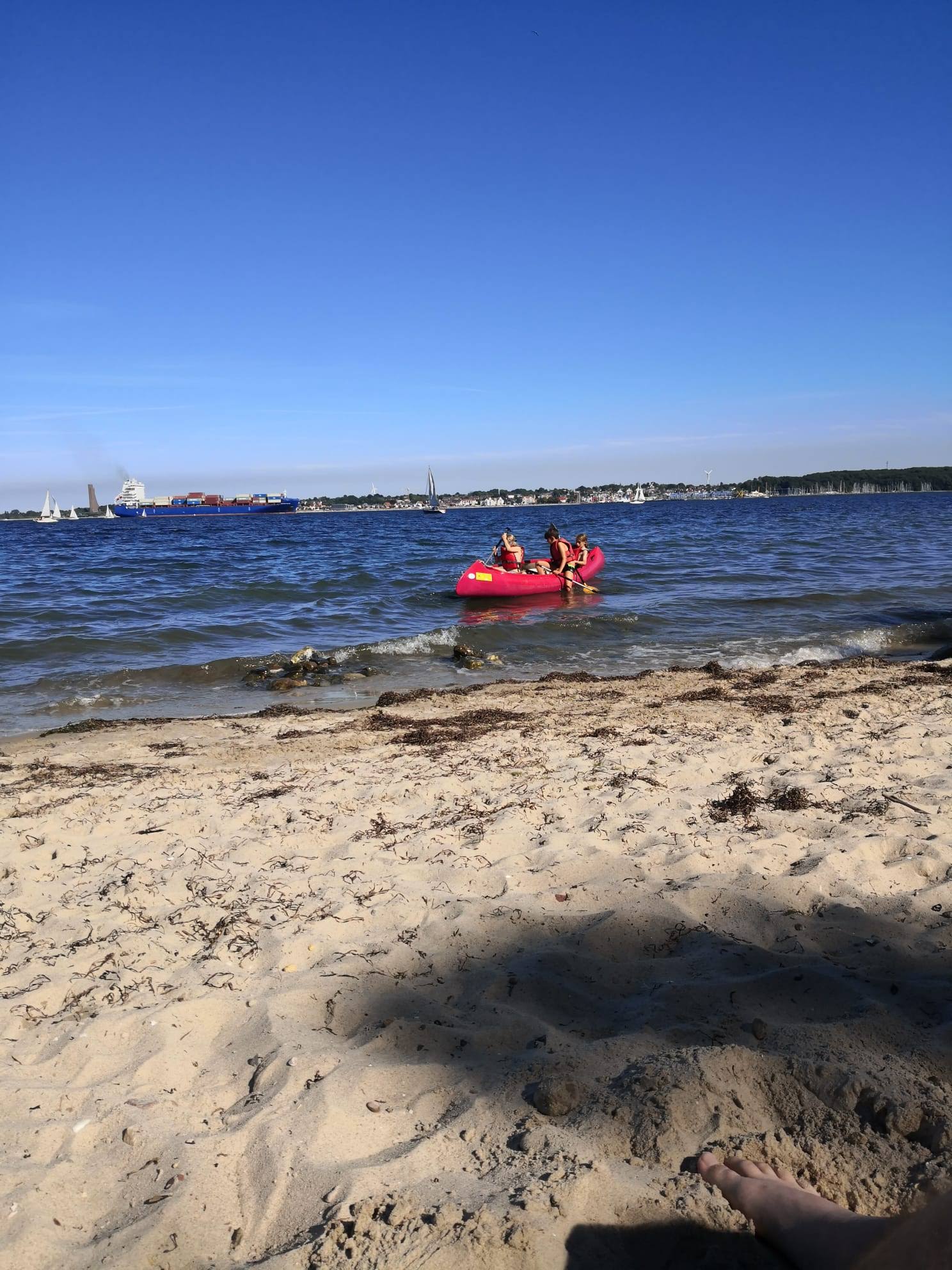 Heute morgen startet der Tag mit einem gesunden Frühstück um 8:00 Uhr. Anschließend fuhren wir mit dem Fahrrad 11 km nach Kiel in die Innenstadt. Als wir nach eineinhalb Stunden ankamen, gab es leckeres Vesper an der Kirche. Danach bekamen wir von Tina( Betreuerin) eine Stadt Rallye ausgeteilt. Diese war sehr spaßig und aufregend! Während dessen durften wir zu dritt in der Innenstadt shoppen. 16:15 Uhr war eigentlich Treffpunkt doch die Betreuer kamen erst in 16:30 Uhr! Als wir wieder daheim waren, hatten wir Freitzeit und konnten zum Strand gehen! Abends gab es Nudeln. Das war sehr lecker!