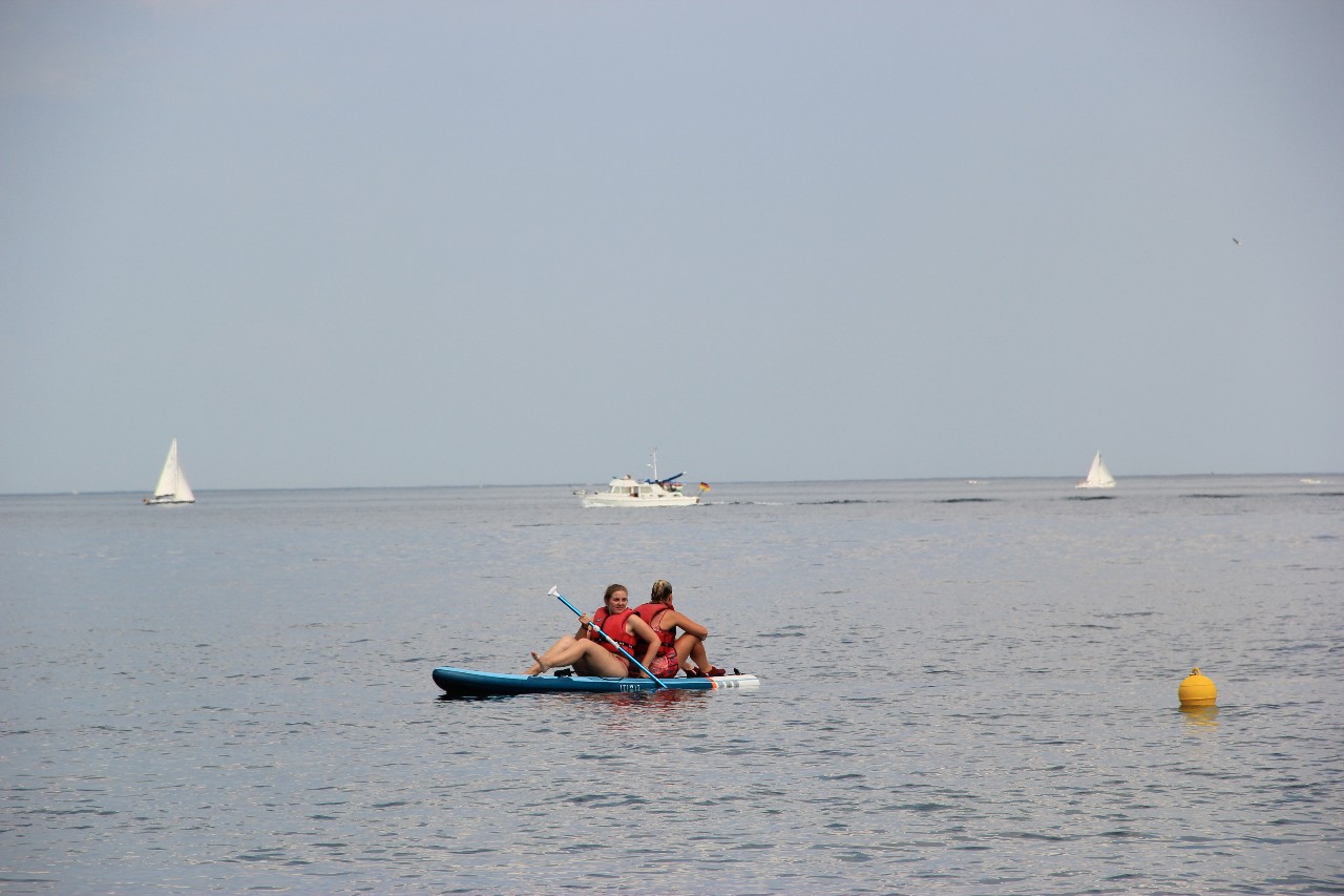 Am Morgen konnten wir uns entscheiden zwischen mehreren kreativen Workshops und Baden bzw. Wassersport am Strand. Nach den legendären Pfannenkuchentorten der Küche zum Mittagessen und einer kleinen Pause verbrachten wir den Nachmittag am Sandstrand. Die restliche Zeit stand uns zur freien Verfügung.