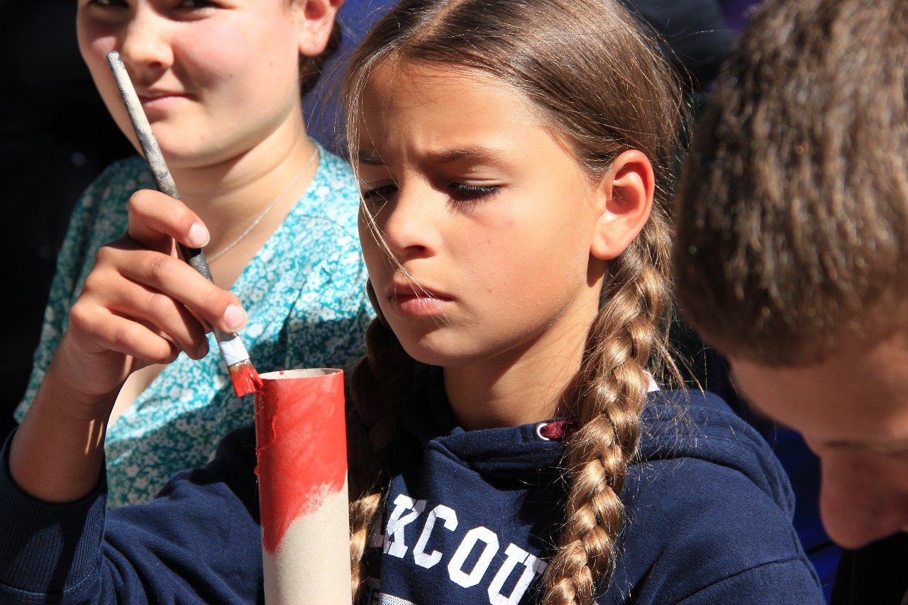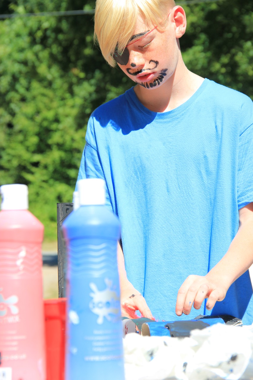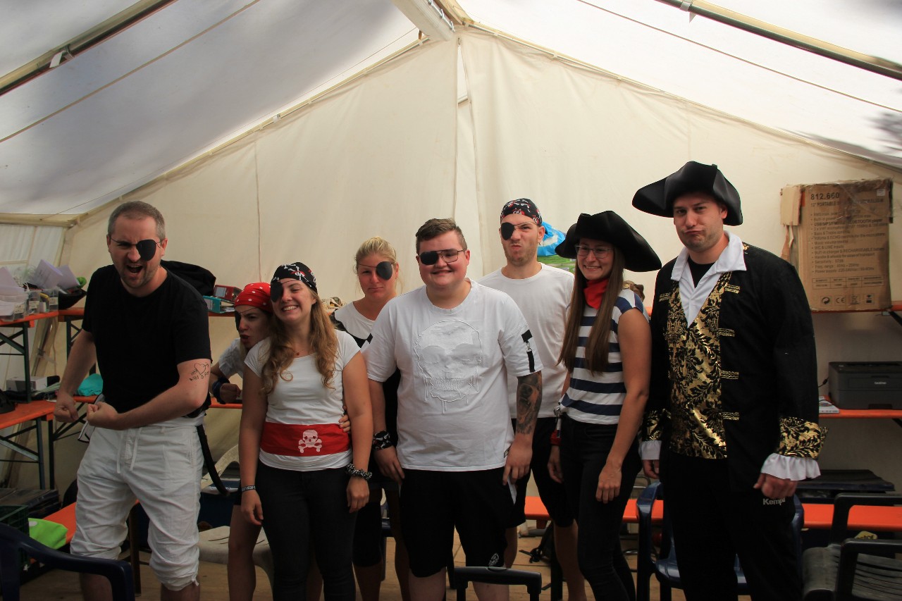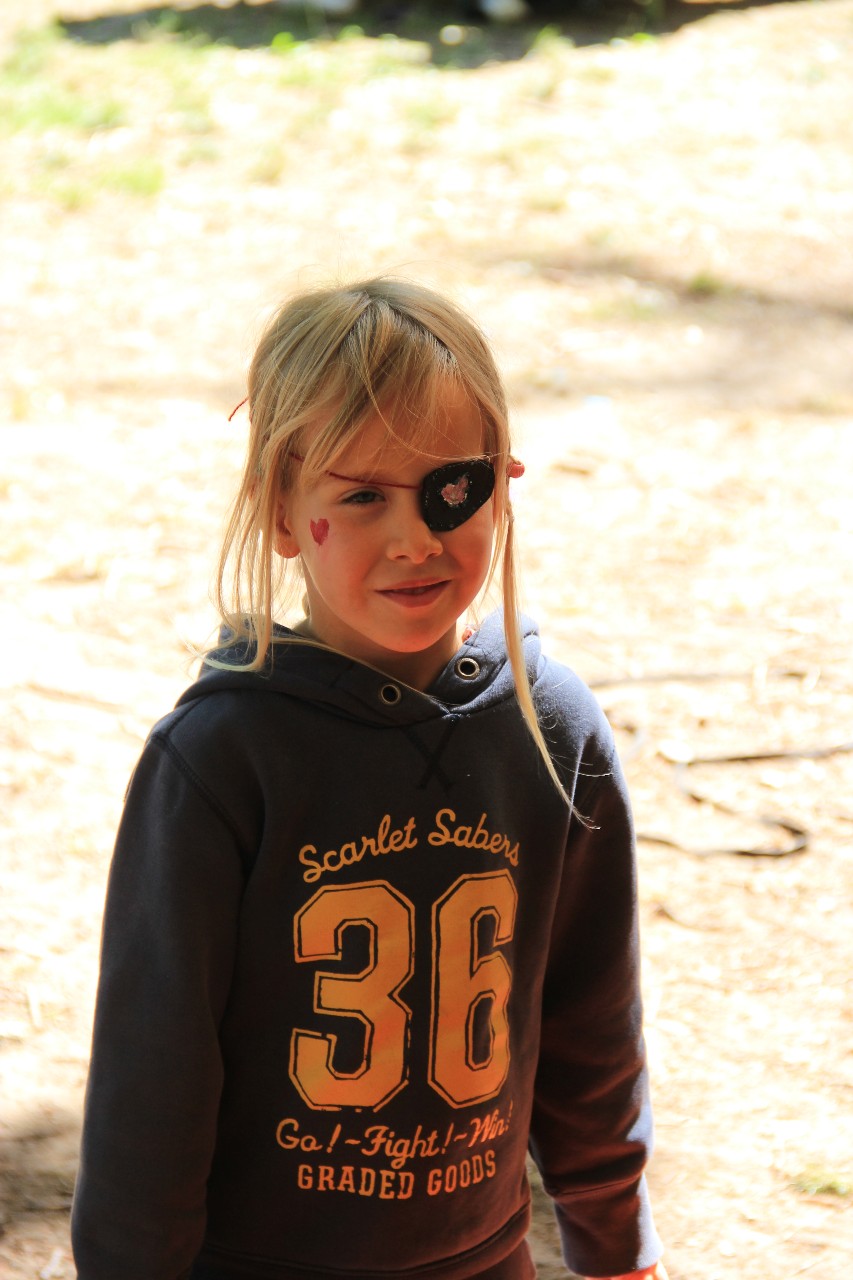 Bevor es losging mit dem Piratentag mussten alle ihre Handys abgeben. Dann haben wir eine Piratenklappe und in der Gruppe eine Piratenflagge gebastelt. Außerdem haben wir uns wie Piraten geschminkt und coole Frisuren gemacht.